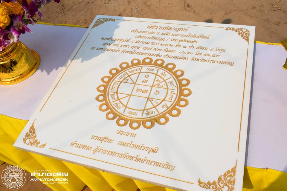 เป็นประธานในพิธีบวงสรวงการเตรียมการจัดพิธีพลีกรรมตักน้ำโดยนายพิตรพิบูล ธนเกียรติโยธิน ผู้อำนวยการแขวงทางหลวงอำนาจเจริญ เข้าร่วมพิธี ณ บริเวณเกาะกลาง อ่างเก็บน้ำพุทธอุทยาน (เกาะจิตรกูฏ) อำเภอเมือง จังหวัดอำนาจเจริญ