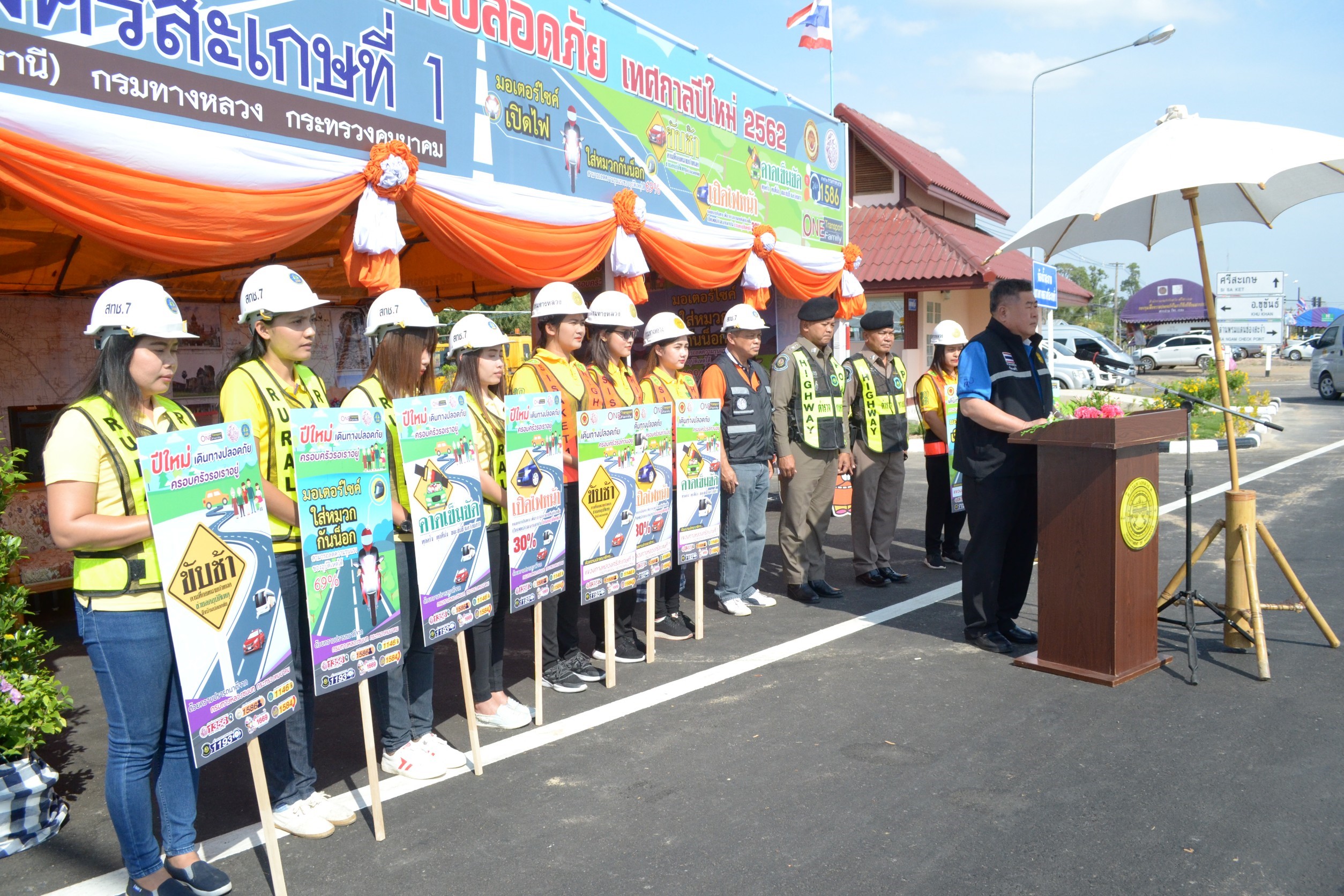 วันที่ 27 ธันวาคม 2561 แขวงทางหลวงศรีสะเกษที่ 1 นำโดยนายวิชาญ พันธ์นุเรณู ผู้อำนวยการแขวงทางหลวงศรีสะเกษที่ 1 พร้อมด้วยคณะเจ้าหน้าที่แขวงทางหลวงศรีสะเกษที่ 1 ร่วมจัดพิธีเปิดจุดบริการทั่วไทยเทศกาลปีใหม่ 2562 และรณรงค์การขับขี่ปลอดภัย ตามมาตรการ 5 มาตรการของกระทรวงคมนาคม "ขับช้า เปิดไฟหน้า คาดเข็มขัด มอเตอร์ไซค์เปิดไฟหน้า สวมหมวกกันน็อค " ณบริเวณสี่แยกนาเจริญ อำเภอขุขันธ์จังหวัดศรีสะเกษ โดยได้รับเกียรติจาก นายสุรชัย สุนันทพงศ์ศักดิ์ ผู้อำนวยการสำนักงานทางหลวงที่ 9 อุบลราชธานี ให้เกียรติมาเป็นประธานในพิธีเปิดพร้อมทั้งหน่วยงานในสังกัดกระทรวงคมนาคมตำรวจทางหลวง ร่วมเป็นเกียรติในพิธีเปิดครั้งนี้