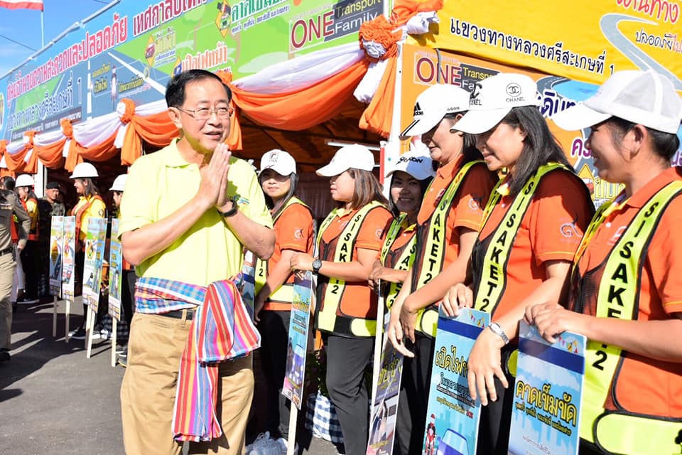ผู้อำนวยการสำนักอำนวยความปลอดภัย ในการตรวจเยี่ยมโครงข่ายคมนาคมจังหวัดศรีสะเกษ โดยมีท่านผู้ว่าราชการจังหวัดศรีสะเกษ นายวีระศักดิ์ วิจิตร์แสงศรี กล่าวต้อนรับในนามจังหวัดศรีสะเกษ และนายสุรชัยสุนันทพงษ์ศักดิ์ผู้อำนวยการสำนักงานทางหลวงที่ 9 อุบลราชธานีเป็นผู้แทนหน่วยงานในสังกัดกระทรวงคมนาคมกล่าวต้อนรับและรายงานข้อมูลอุบัติเหตุในพื้นที่ควบคุม โดยท่านรัฐมนตรีว่าการกระทรวงคมนาคมได้ทำพิธีปล่อยลูกโป่งเดินทางอุ่นใจปลอดภัยไปกับกรมทางหลวงและปล่อยขบวนรถสายตรวจความปลอดภัยทางถนนปฏิบัติการเข้มข้นเทศกาลปีใหม่ 2562รวมทั้งเดินตรวจเยี่ยมเต็นท์ศูนย์อำนวยความสะดวกและปลอดภัยของหน่วยงานในสังกัดกระทรวงคมนาคมและหน่วยงานของจังหวัดศรีสะเกษ