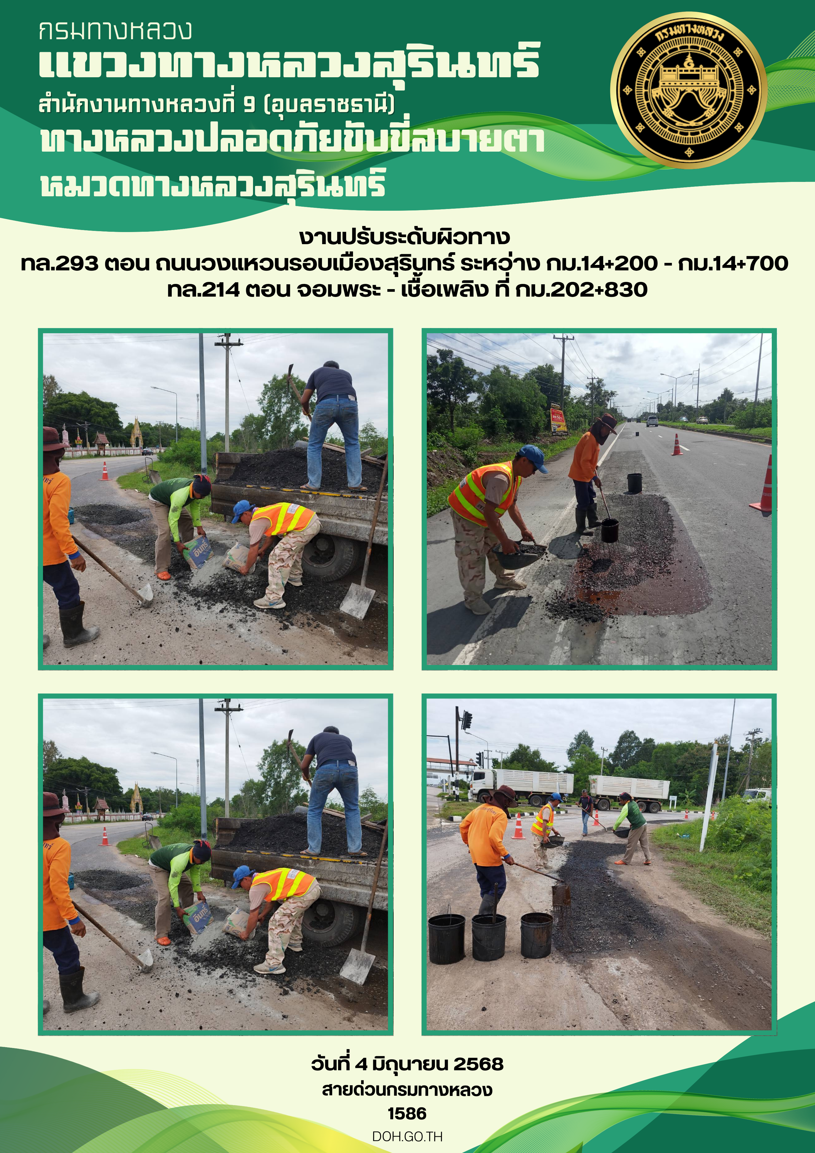 ทางหลวงปลอยภัย ขับขี่สบายตา 4 มิถุนายน 2568 |