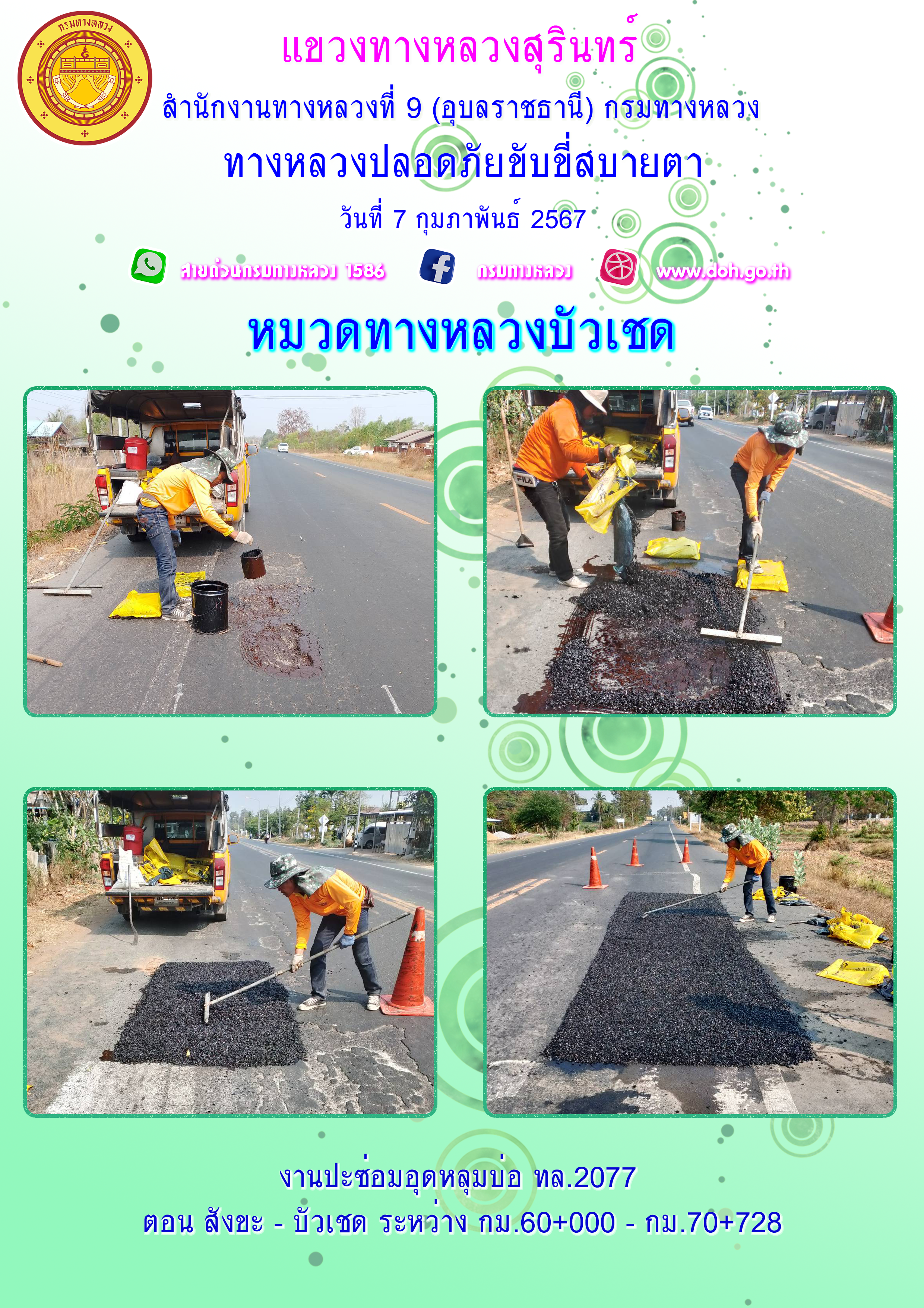 ทางหลวงปลอยภัย ขับขี่สบายตา 7 กุมภาพันธ์ 2567 |