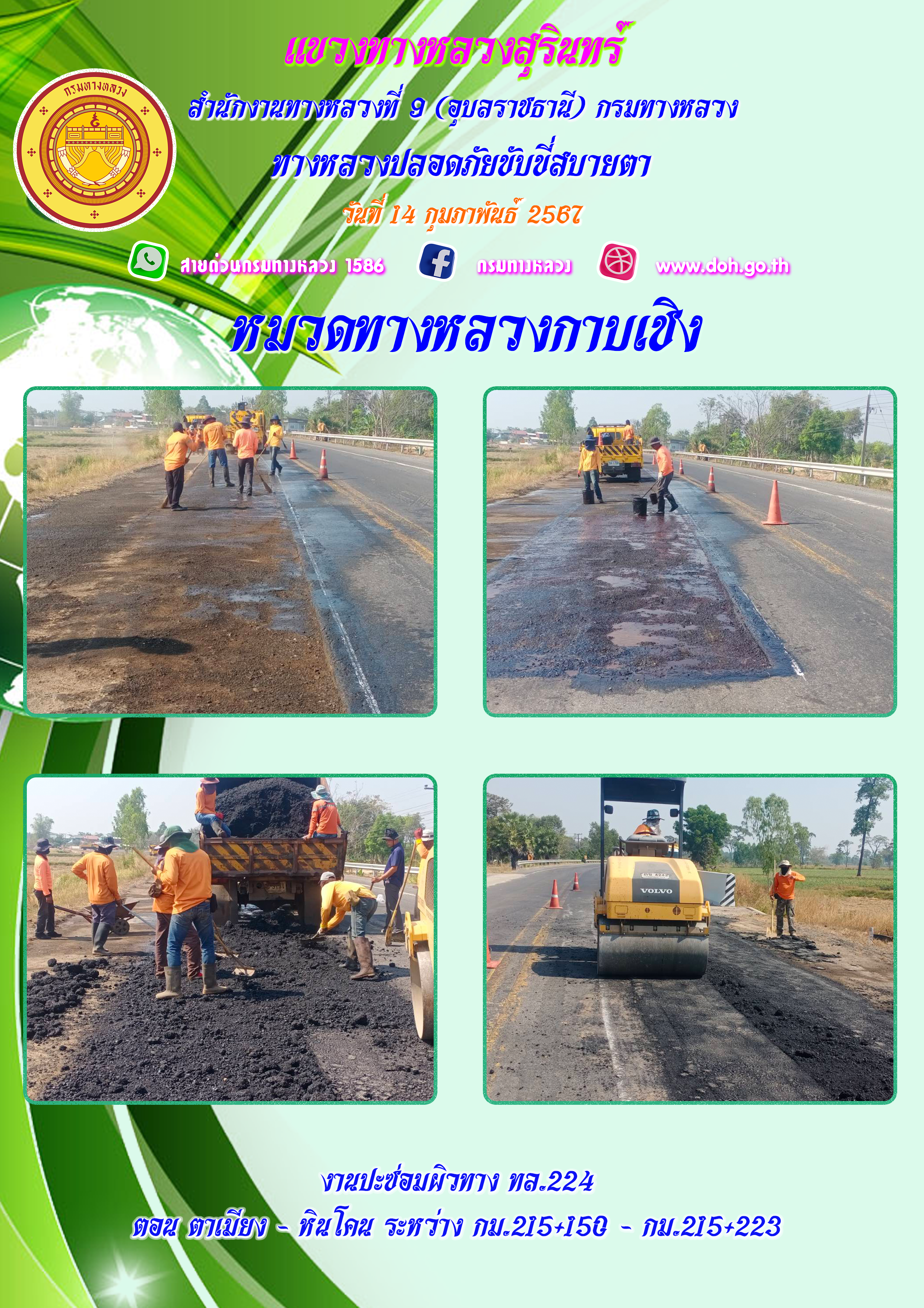ทางหลวงปลอยภัย ขับขี่สบายตา 14 กุมภาพันธ์ 2567 |
