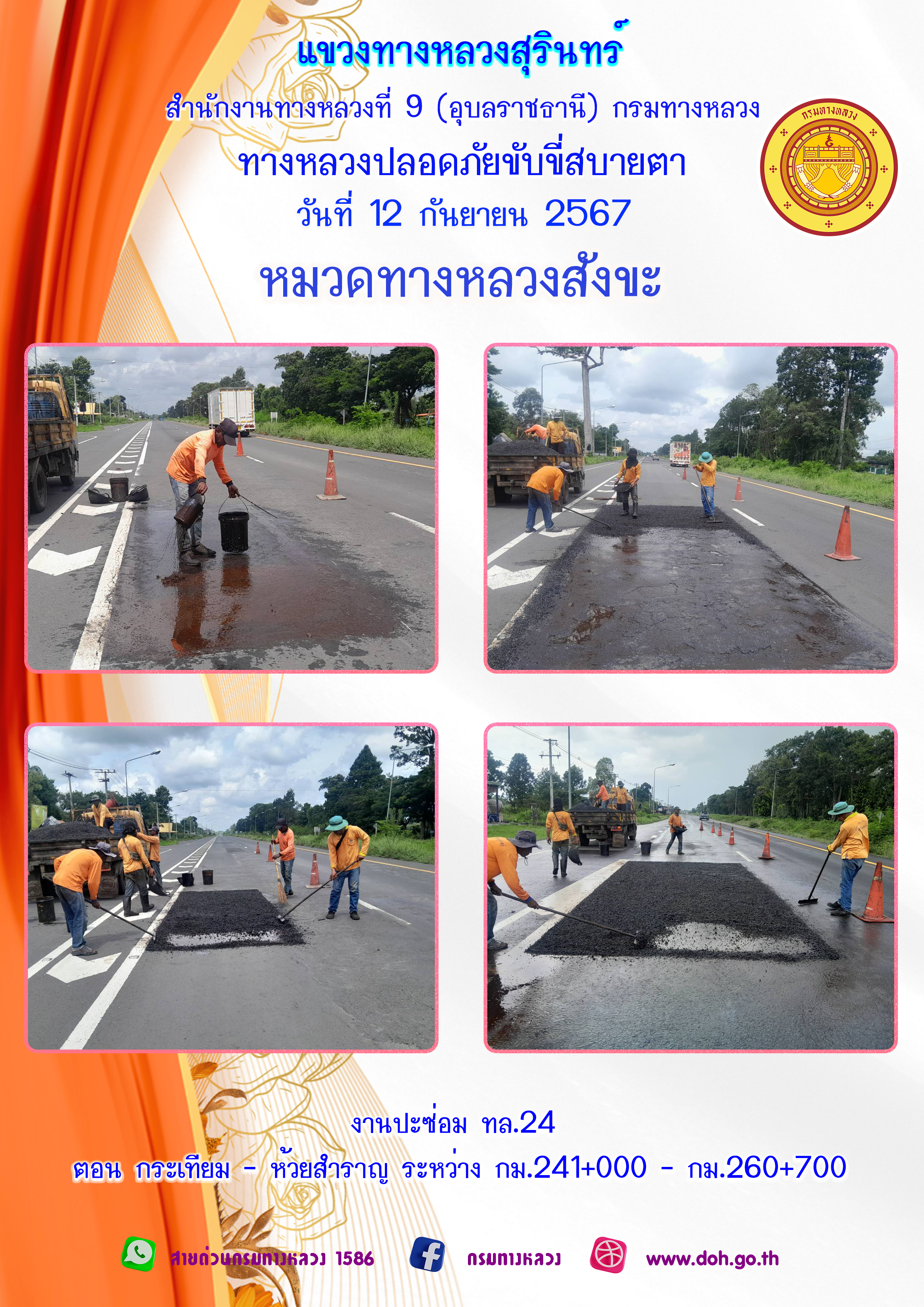 ทางหลวงปลอยภัย ขับขี่สบายตา 9 กันยายน 2567 |