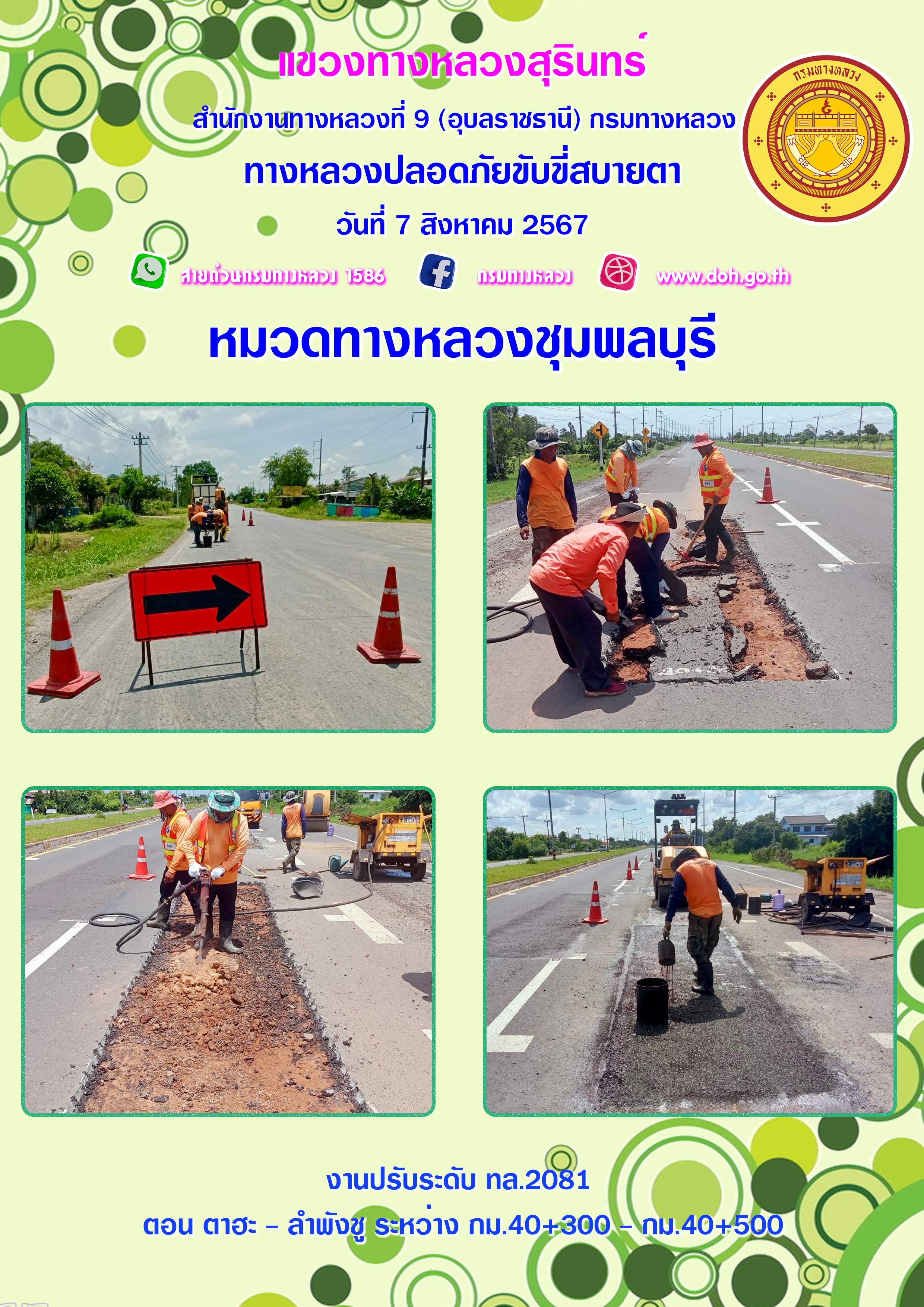 ทางหลวงปลอยภัย ขับขี่สบายตา 7 สิงหาคม 2567 |