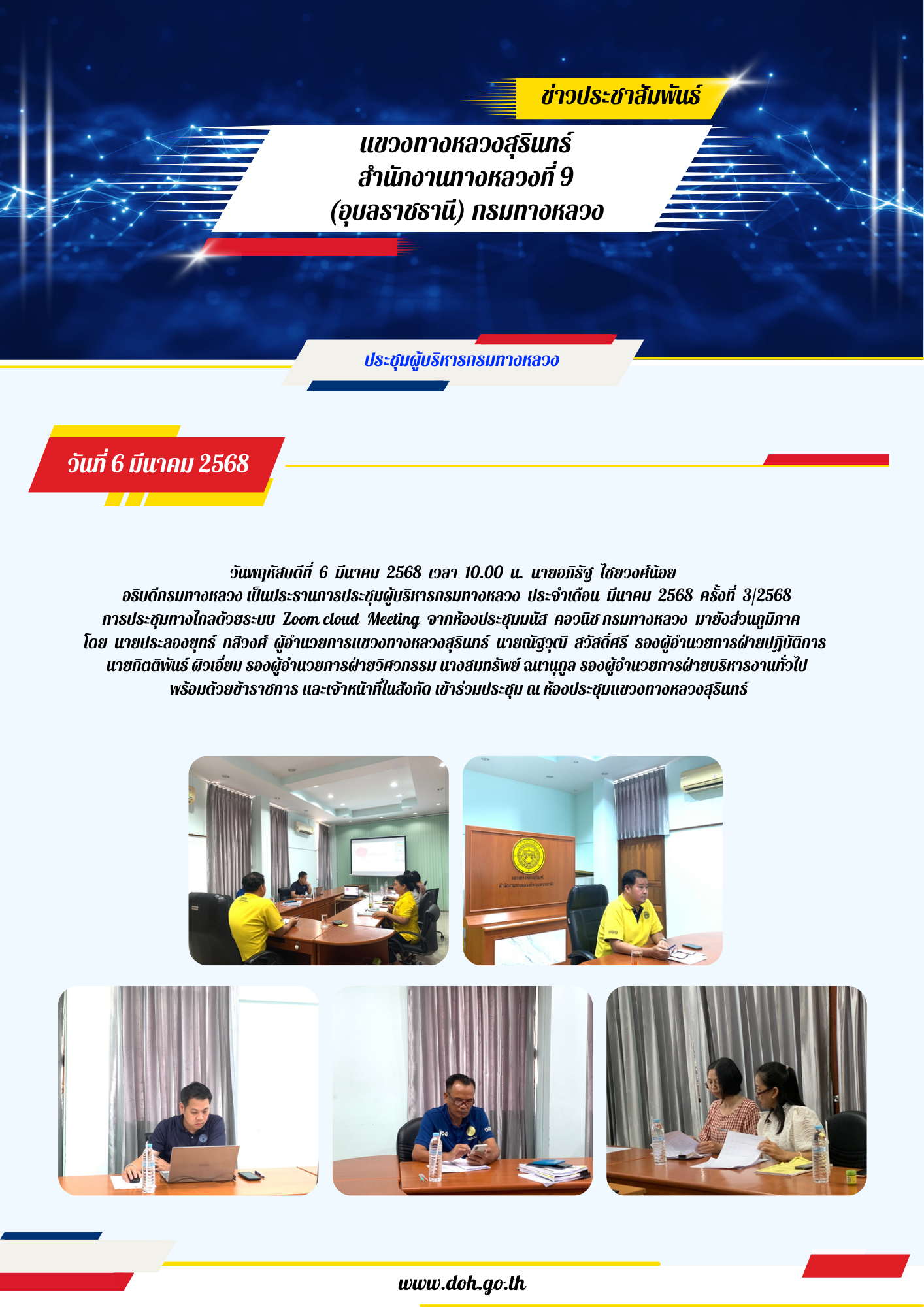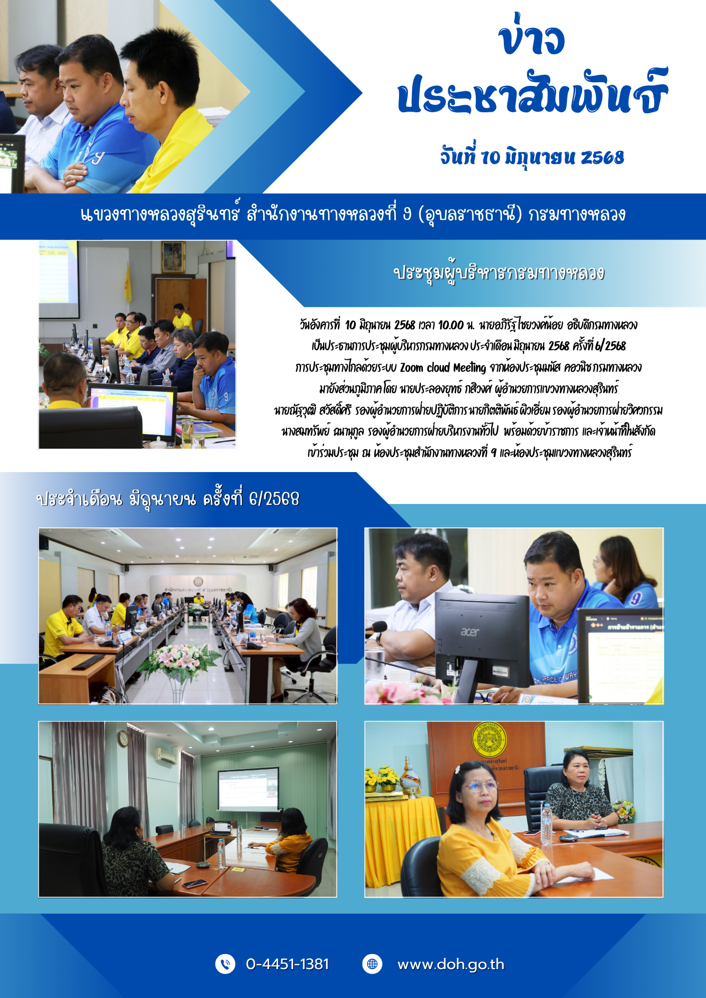 ประชุมผู้บริหารกรมทางหลวง ประจำเดือน มิถุนายน 2568 ครั้งที่ 6/2568