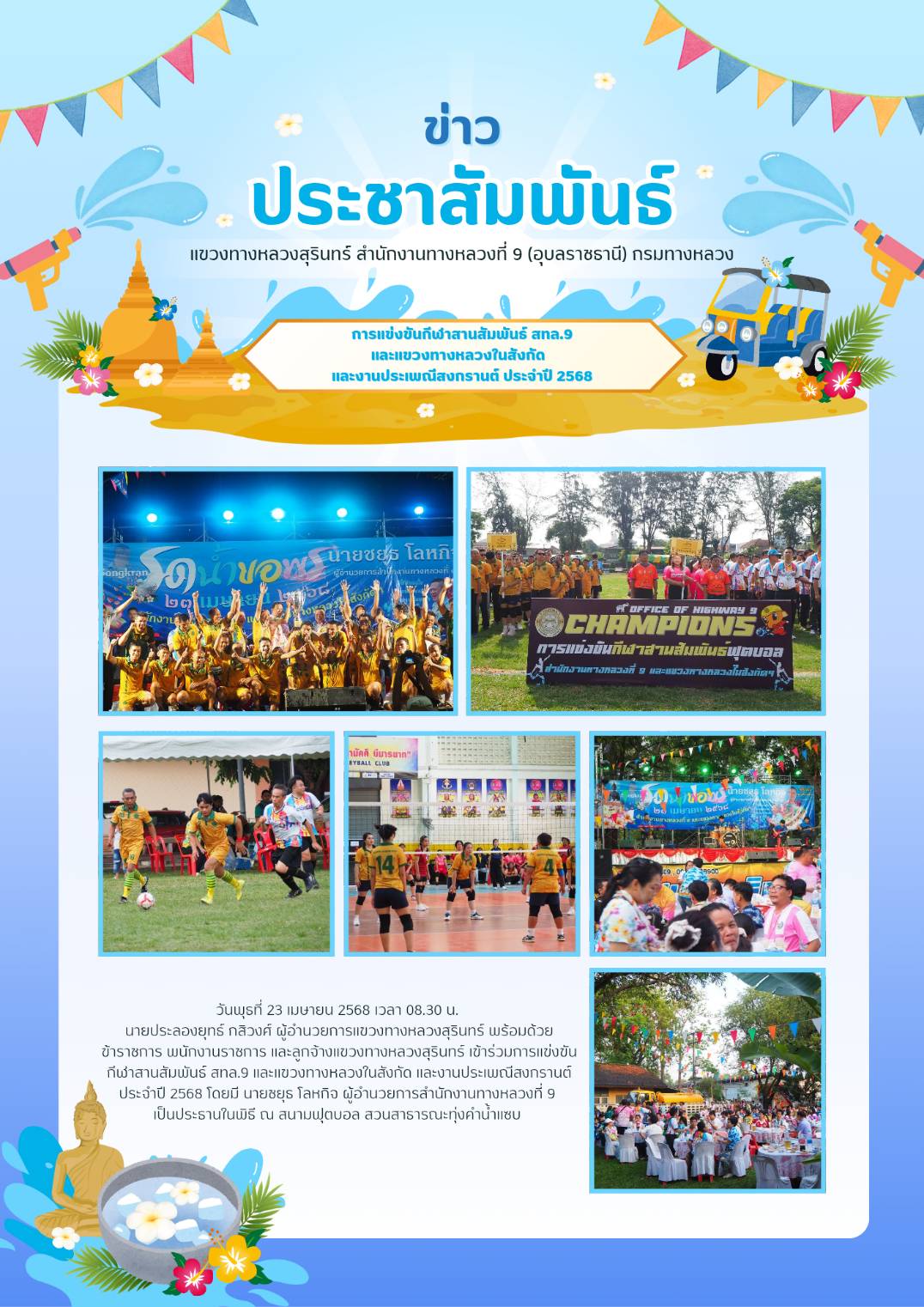 แข่งขันกีฬาสานสัมพันธ์ สทล.9 และแขวงทางหลวงในสังกัด