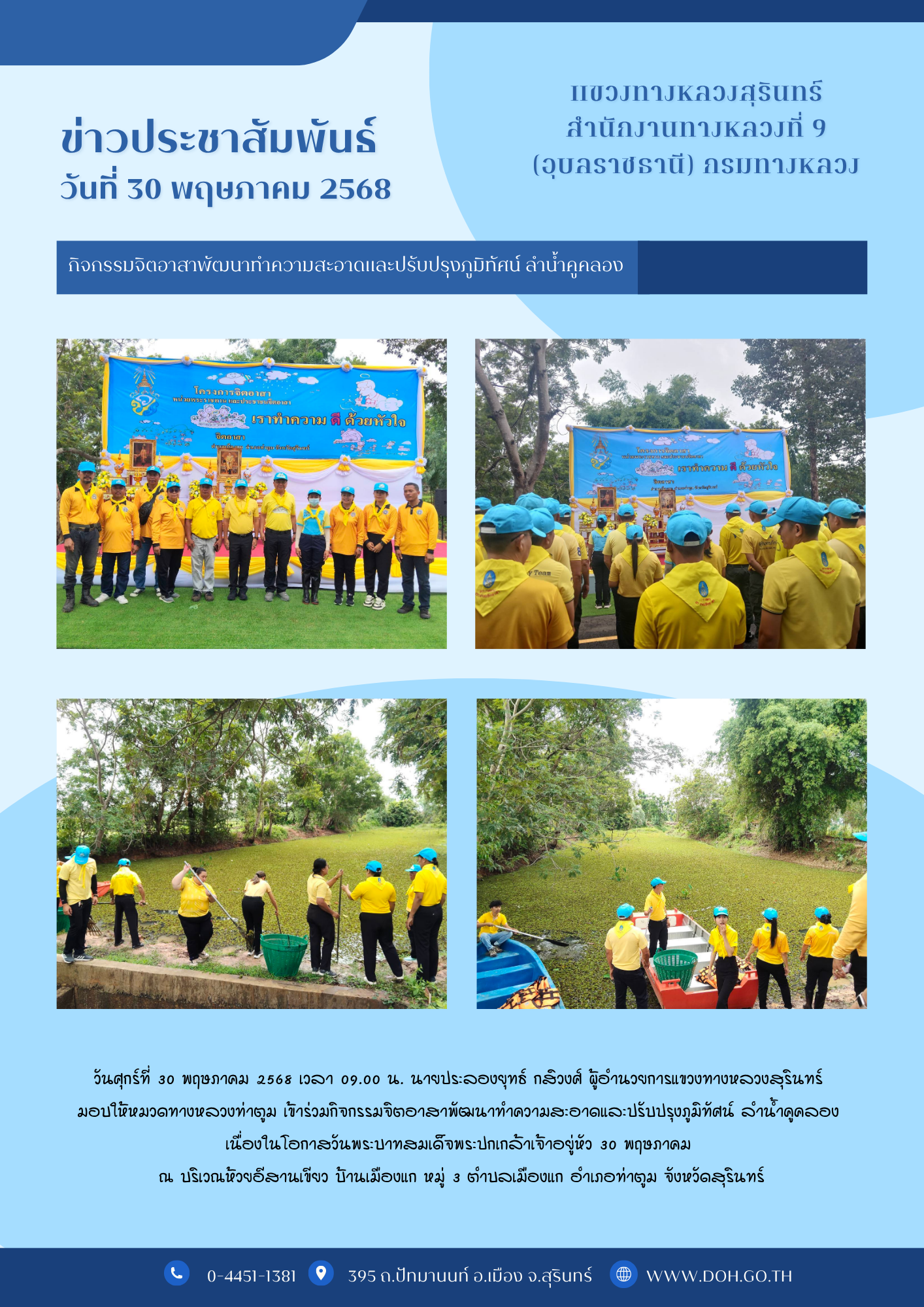 ร่วมกิจกรรมจิตอาสาพัฒนาทำความสะอาดและปรับปรุงภูมิทัศน์ ลำน้ำคูคลอง เนื่องในโอกาสวันพระบาทสมเด็จพระปกเกล้าเจ้าอยู่หัว