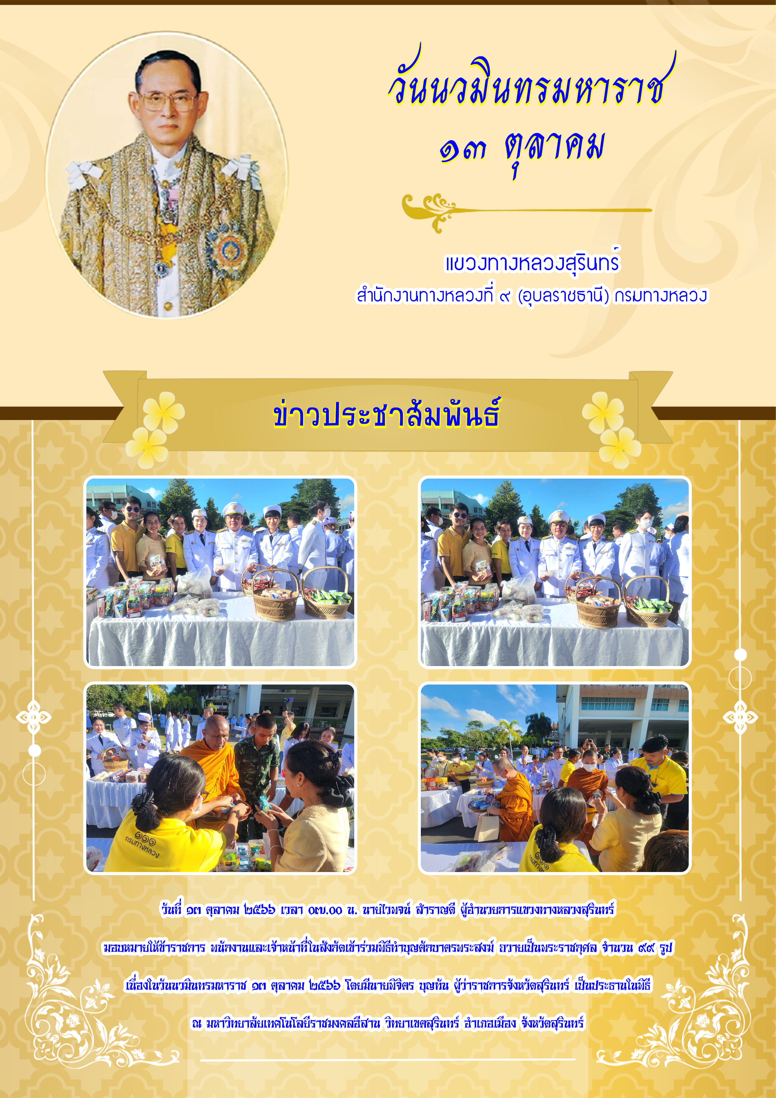 พิธีทำบุญตักบาตรพระสงฆ์ ถวายเป็นพระราชกุศล จำนวน ๙๙ รูป เนื่องในวันนวมินทรมหาราช ๑๓ ตุลาคม ๒๕๖๖