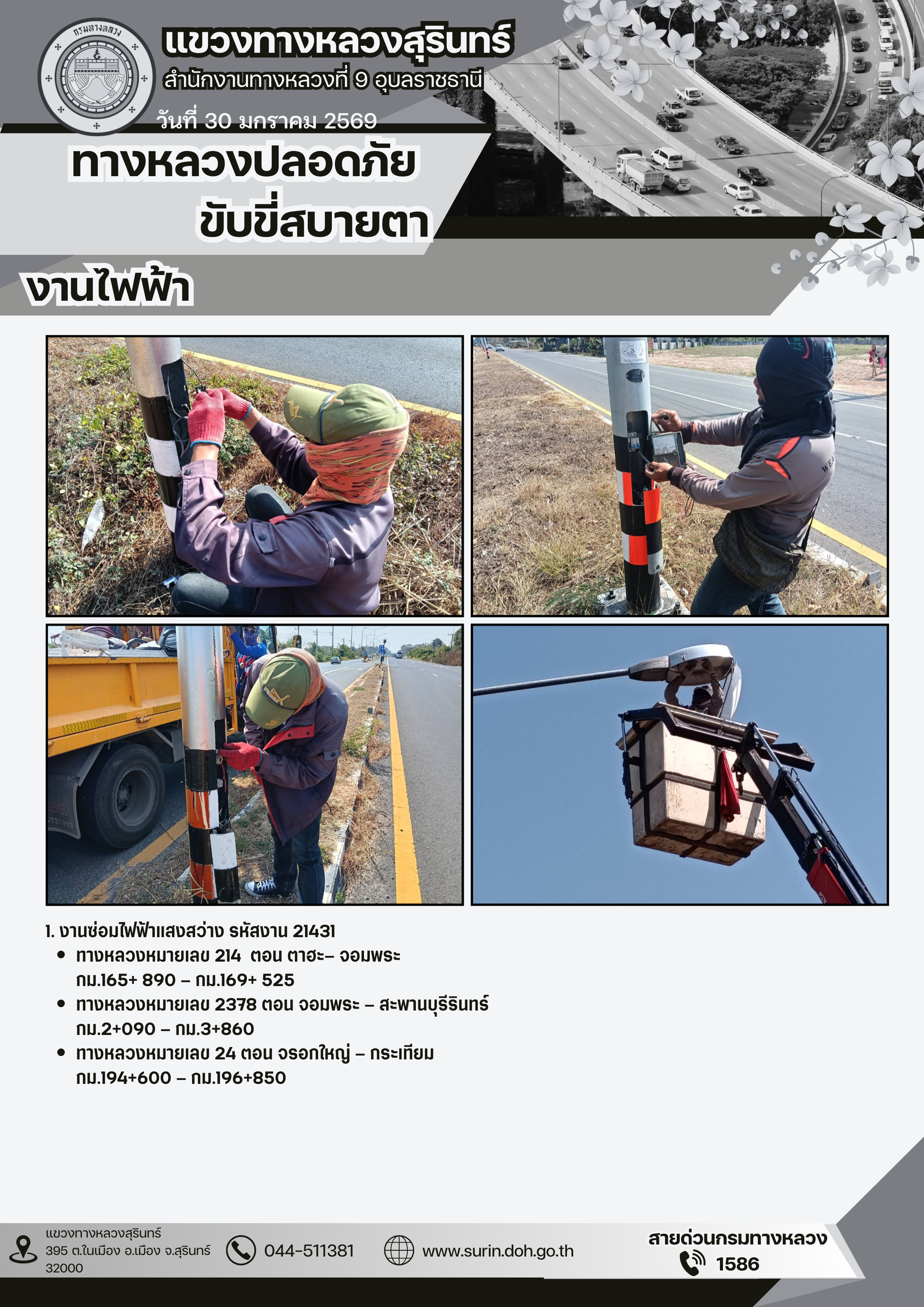 ทางหลวงปลอดภัย ขับขี่สบายตา 30 มกราคม 2569 |