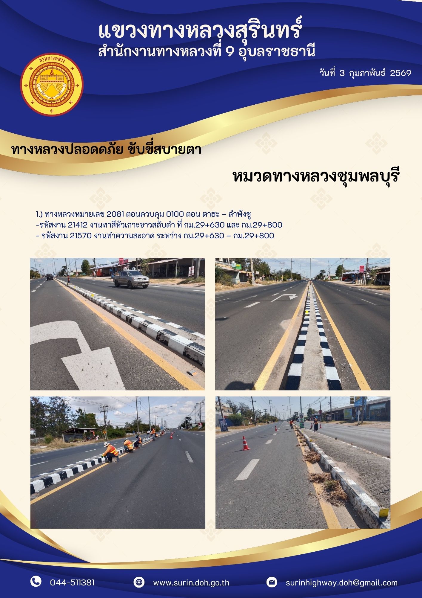 ทางหลวงปลอดภัย ขับขี่สบายตา 3 กุมภาพันธ์ 2569 |