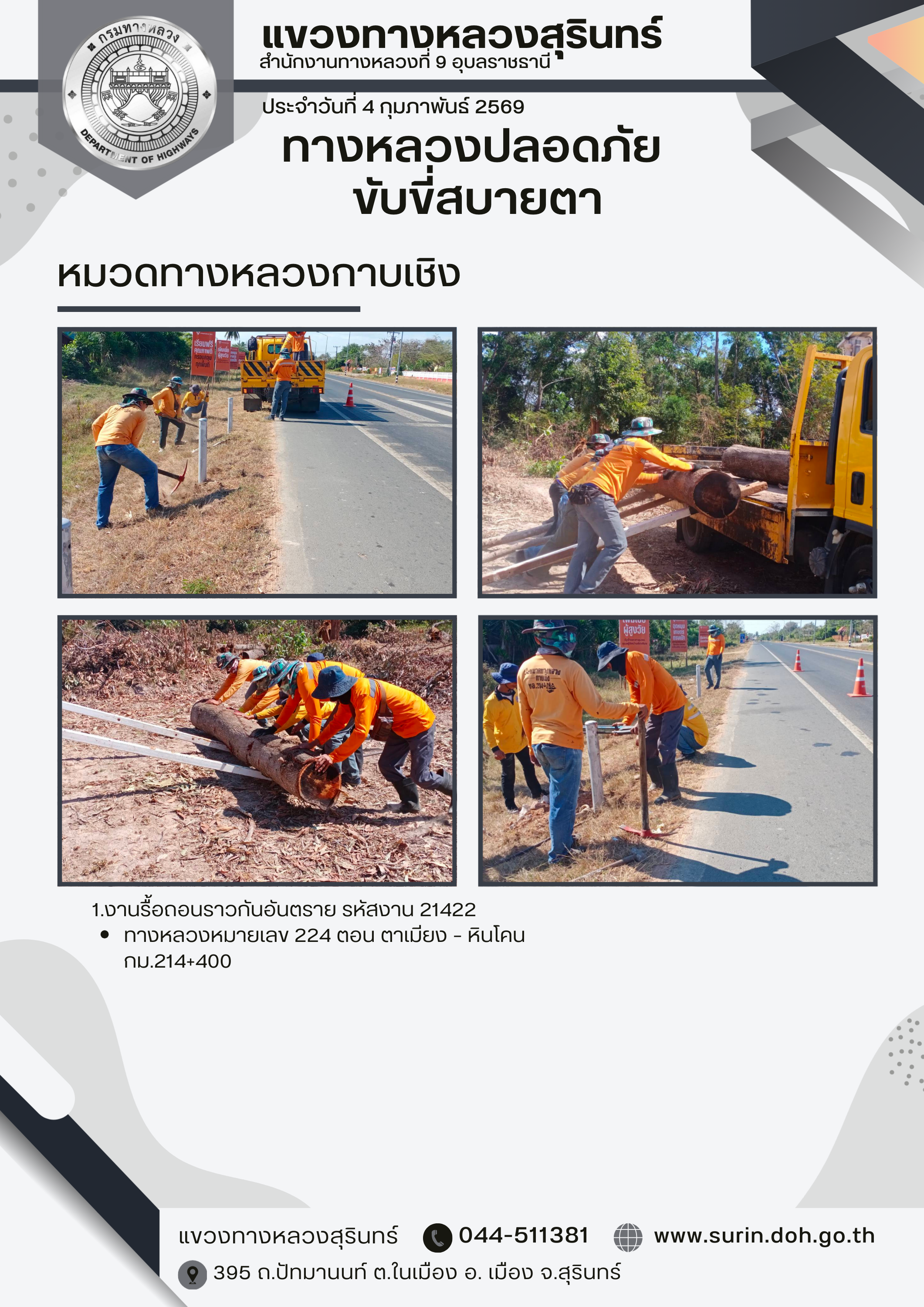 ทางหลวงปลอดภัย ขับขี่สบายตา 4 กุมภาพันธ์ 2569 |