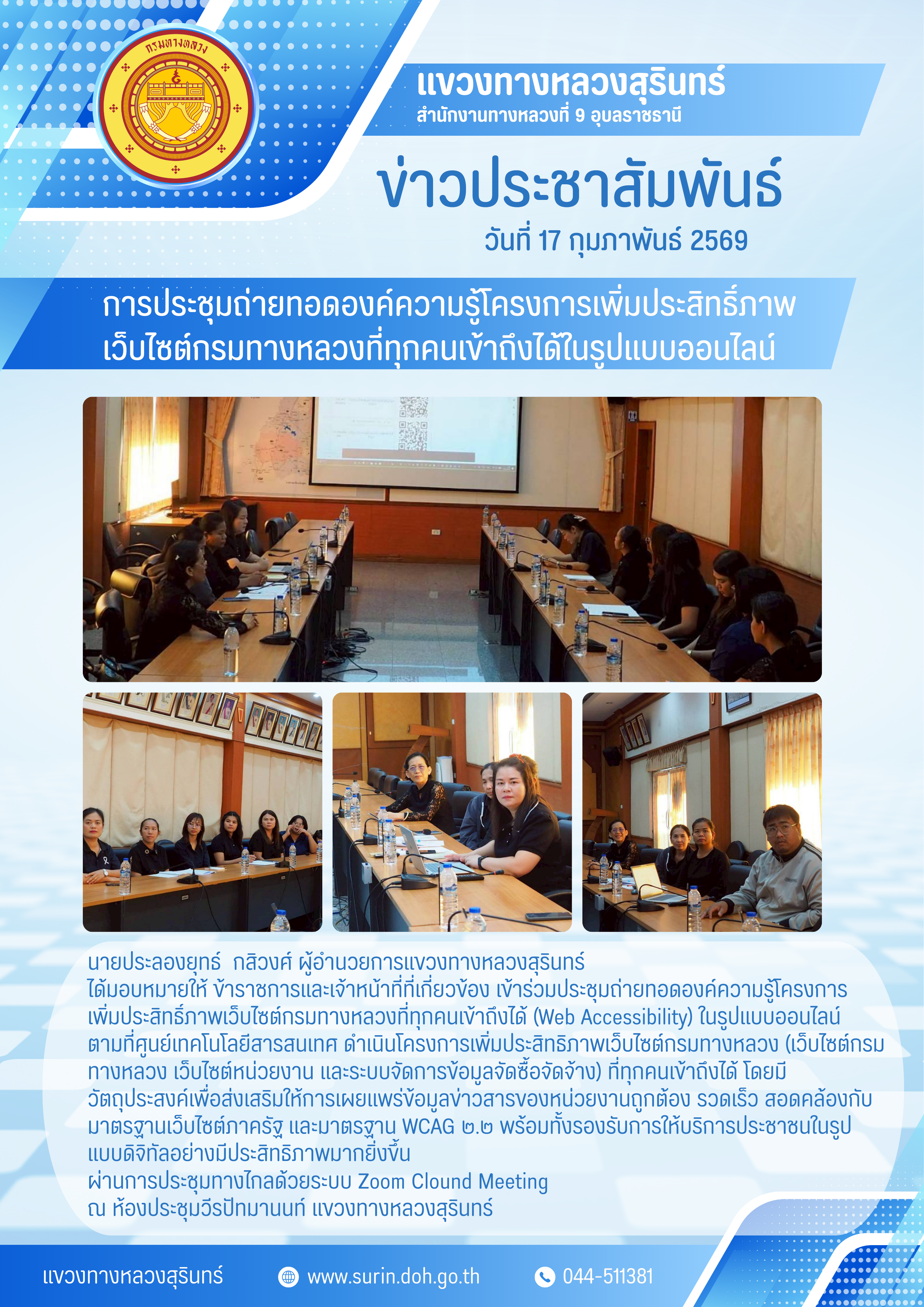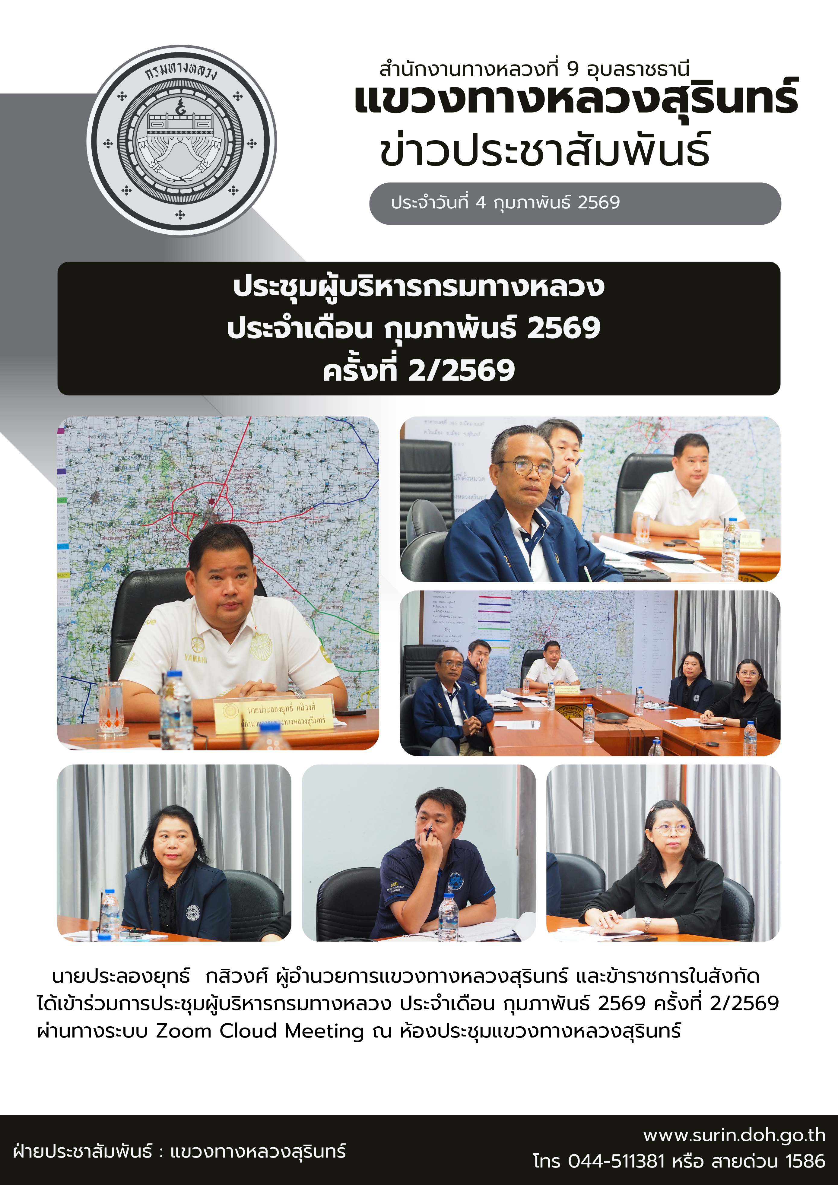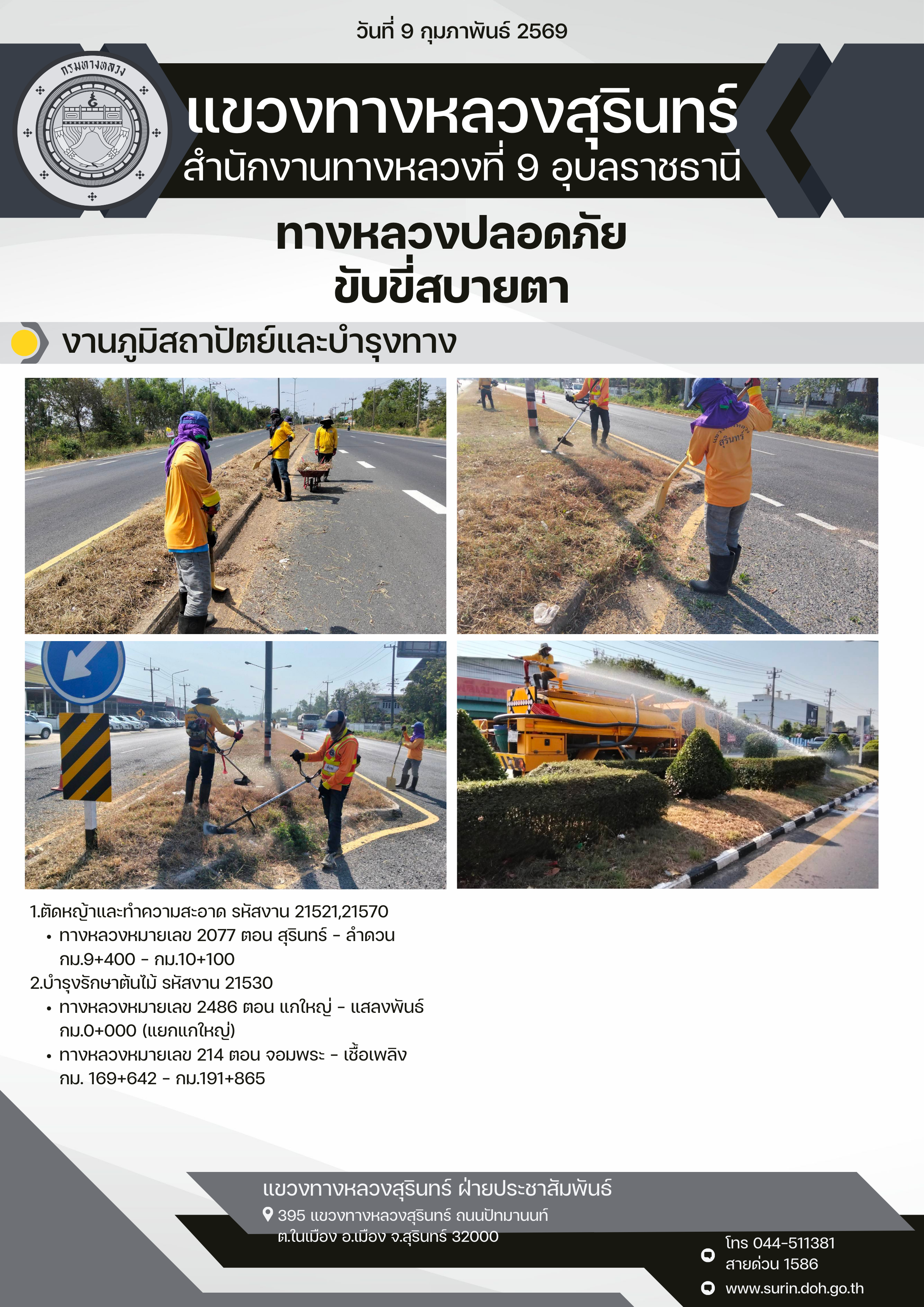 ทางหลวงปลอดภัย ขับขี่สบายตา 9 กุมภาพันธ์ 2569 |