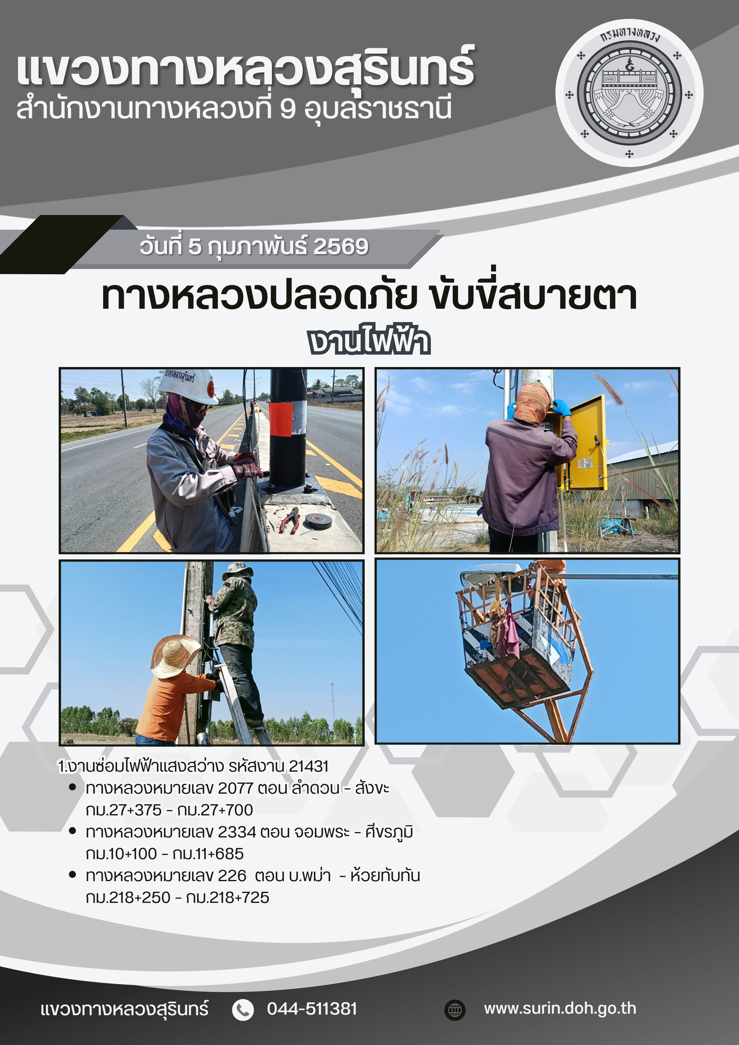 ทางหลวงปลอดภัย ขับขี่สบายตา 5 กุมภาพันธ์ 2569 |
