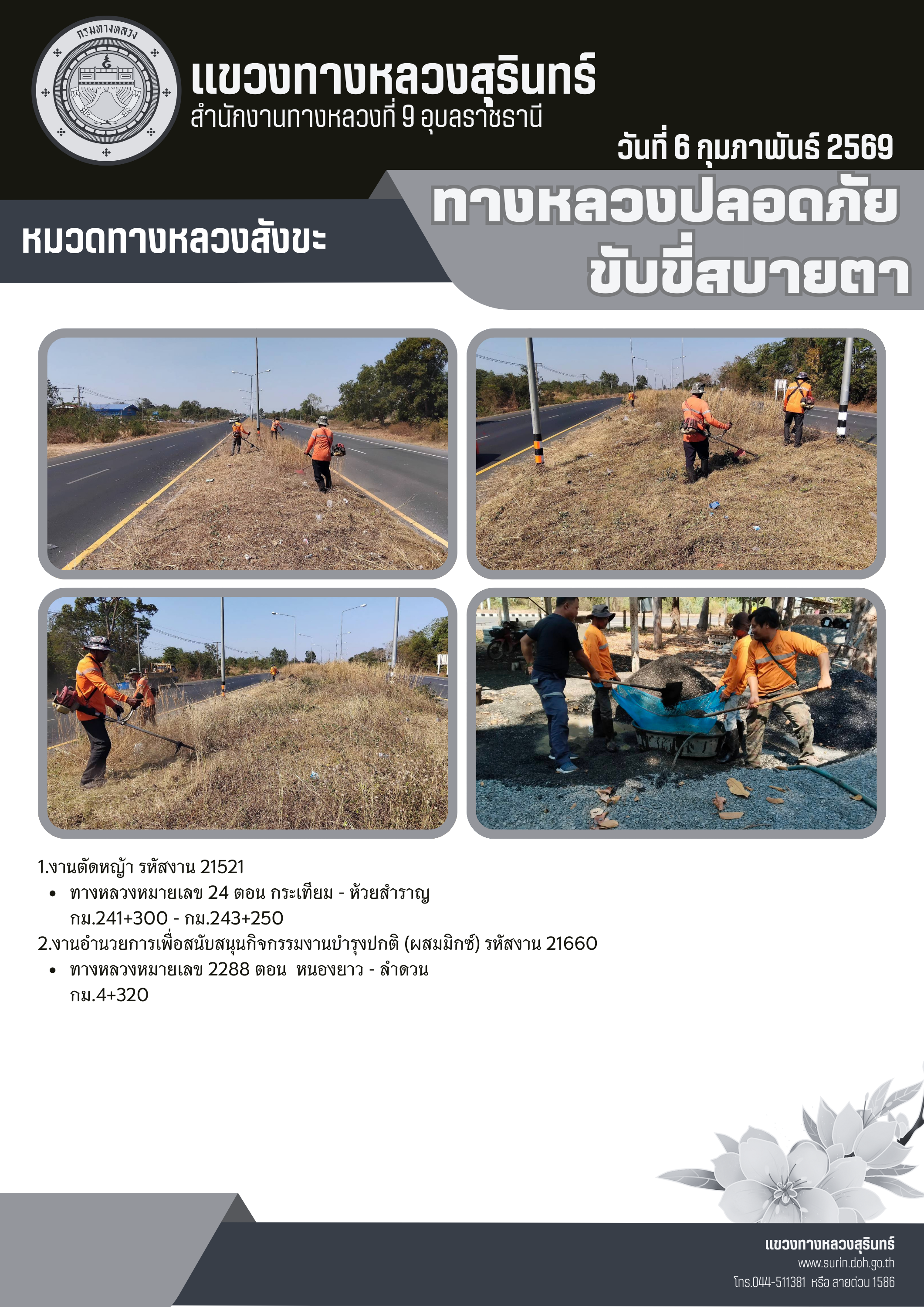 ทางหลวงปลอดภัย ขับขี่สบายตา 6 กุมภาพันธ์ 2569 |
