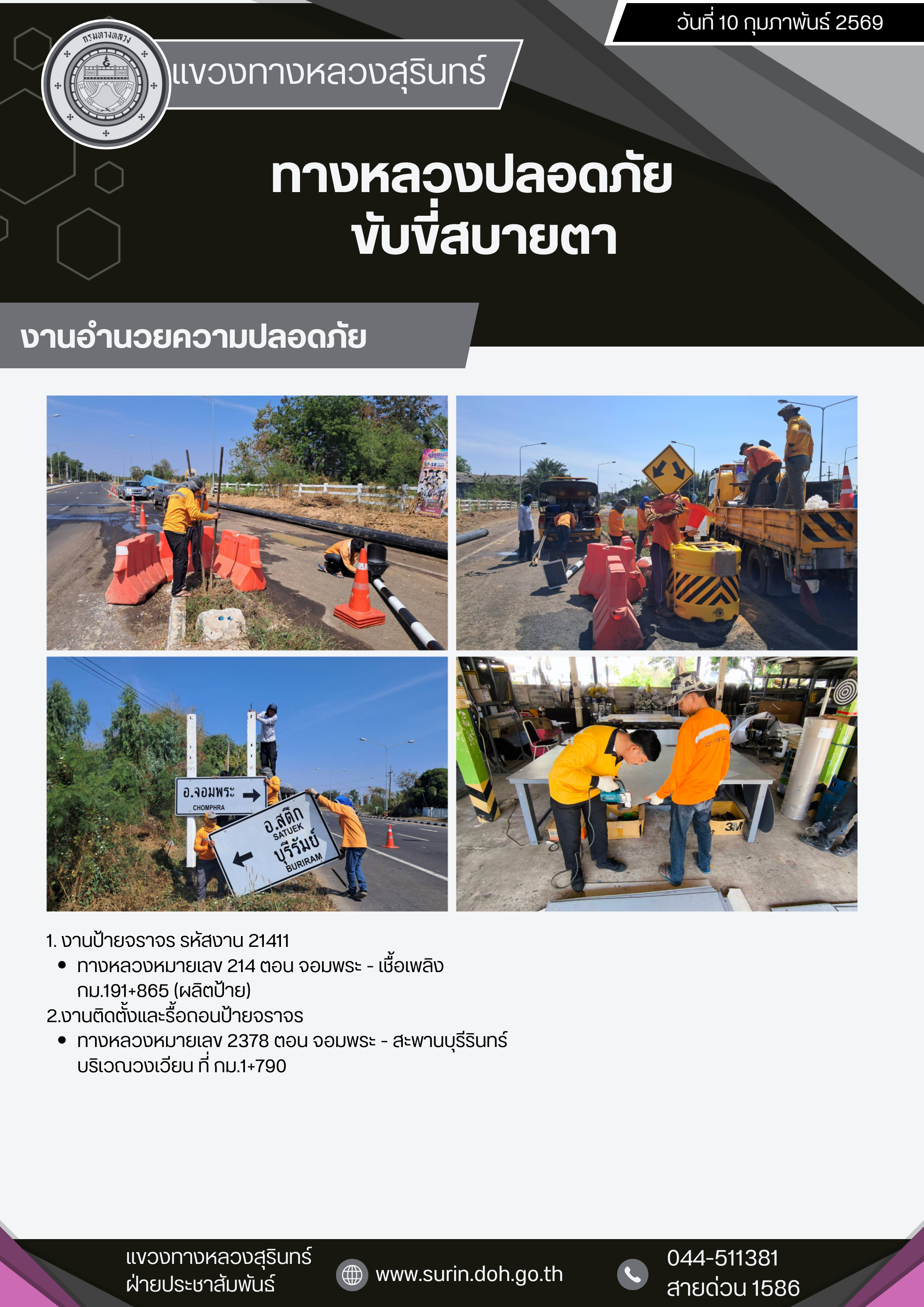 ทางหลวงปลอดภัย ขับขี่สบายตา 10 กุมภาพันธ์ 2569 |
