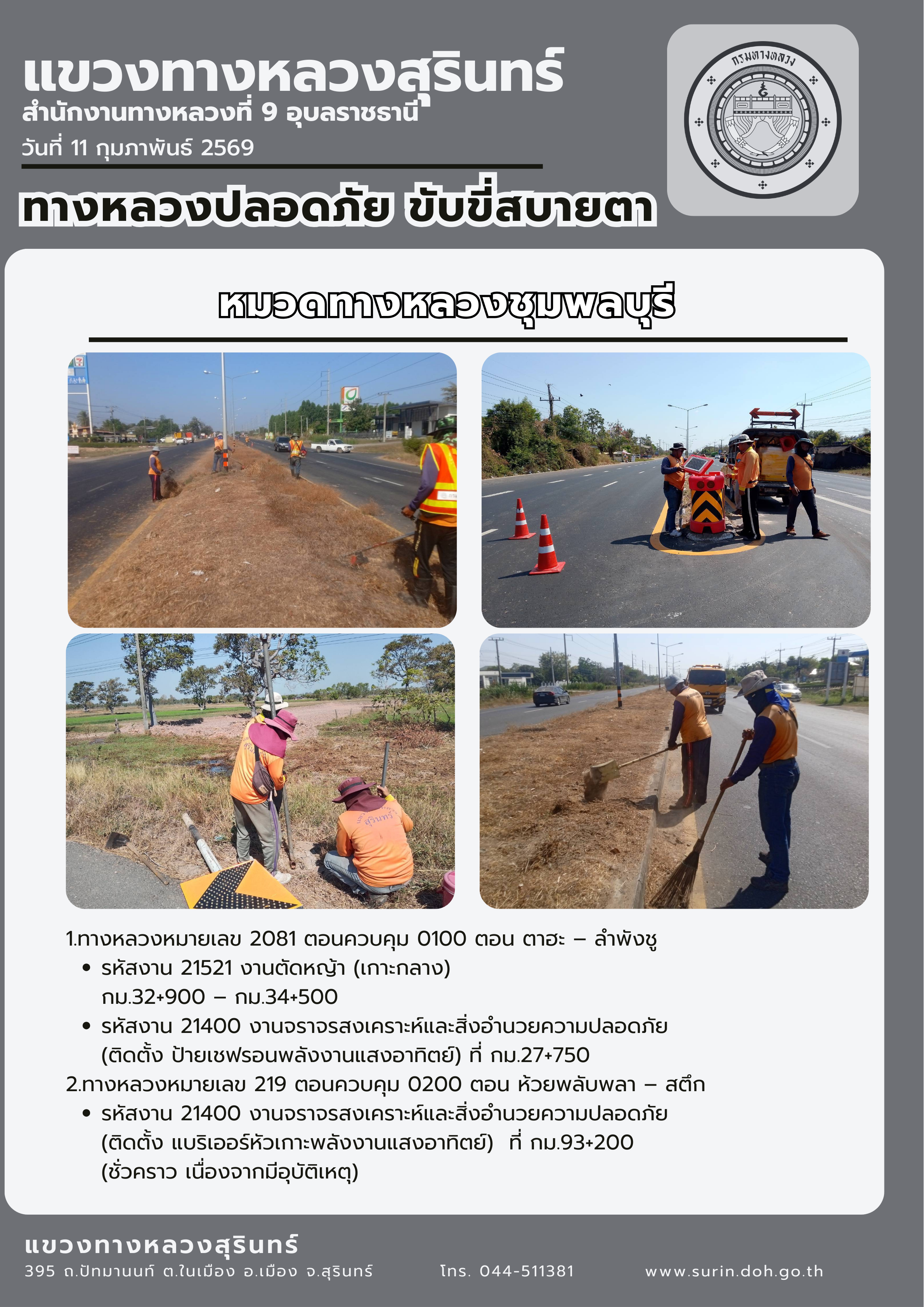 ทางหลวงปลอดภัย ขับขี่สบายตา 11 กุมภาพันธ์ 2569 |