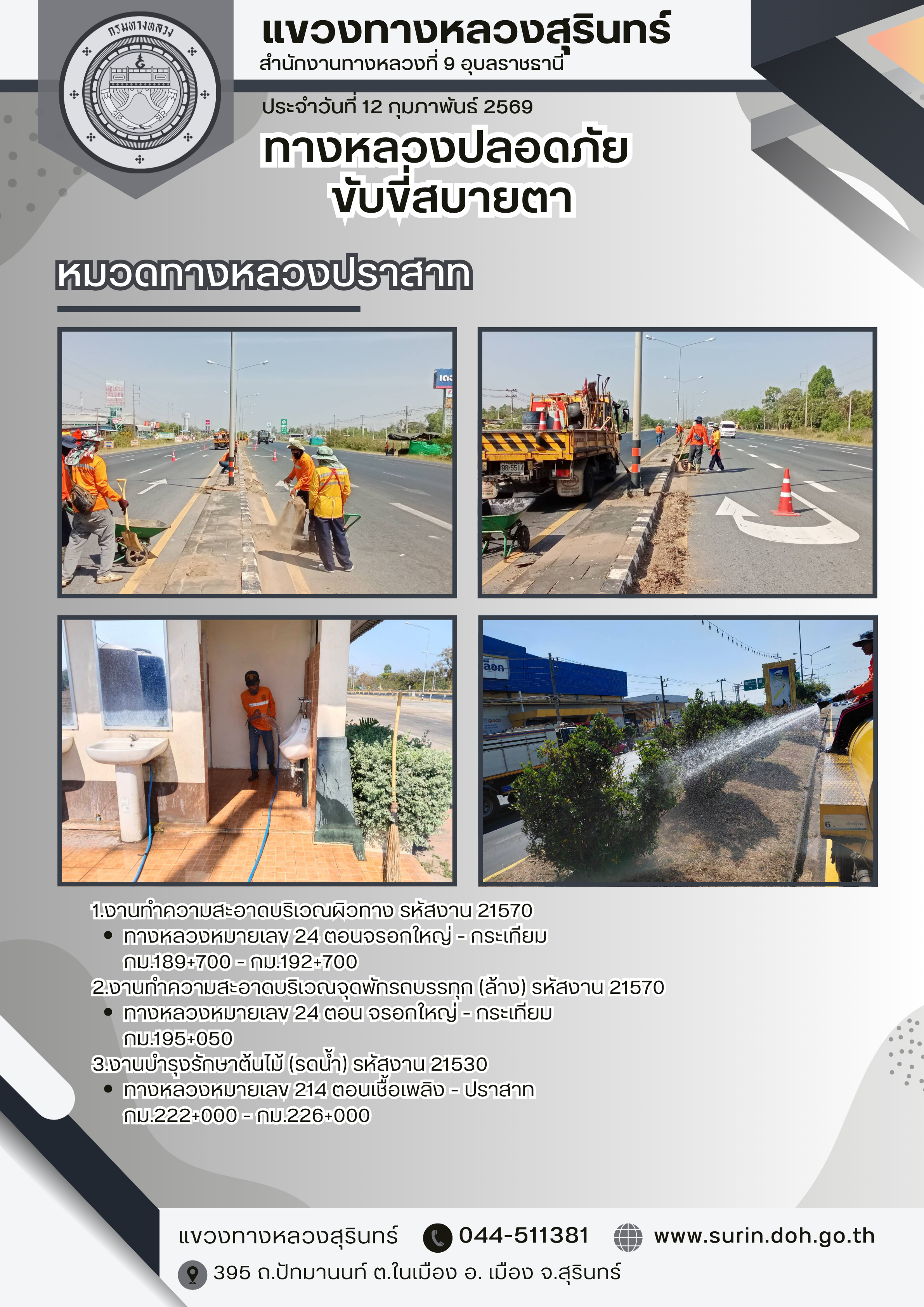 ทางหลวงปลอดภัย ขับขี่สบายตา 12 กุมภาพันธ์ 2569 |