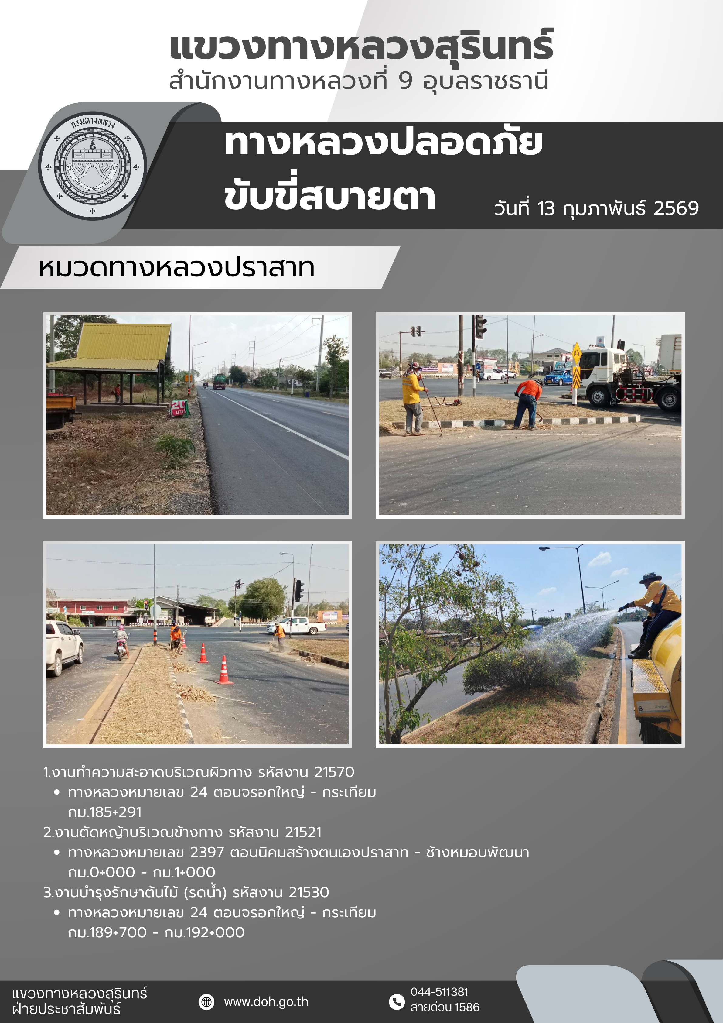 ทางหลวงปลอดภัย ขับขี่สบายตา 13 กุมภาพันธ์ 2569 |