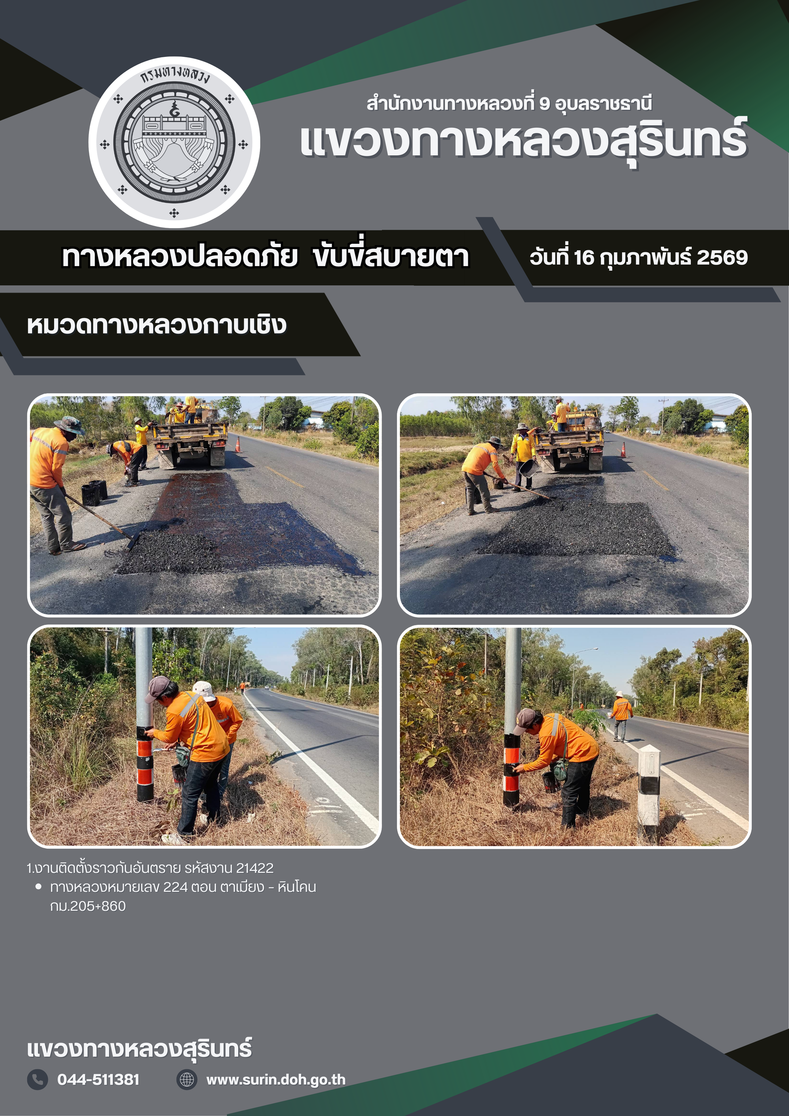 ทางหลวงปลอดภัย ขับขี่สบายตา 16 กุมภาพันธ์ 2569 |