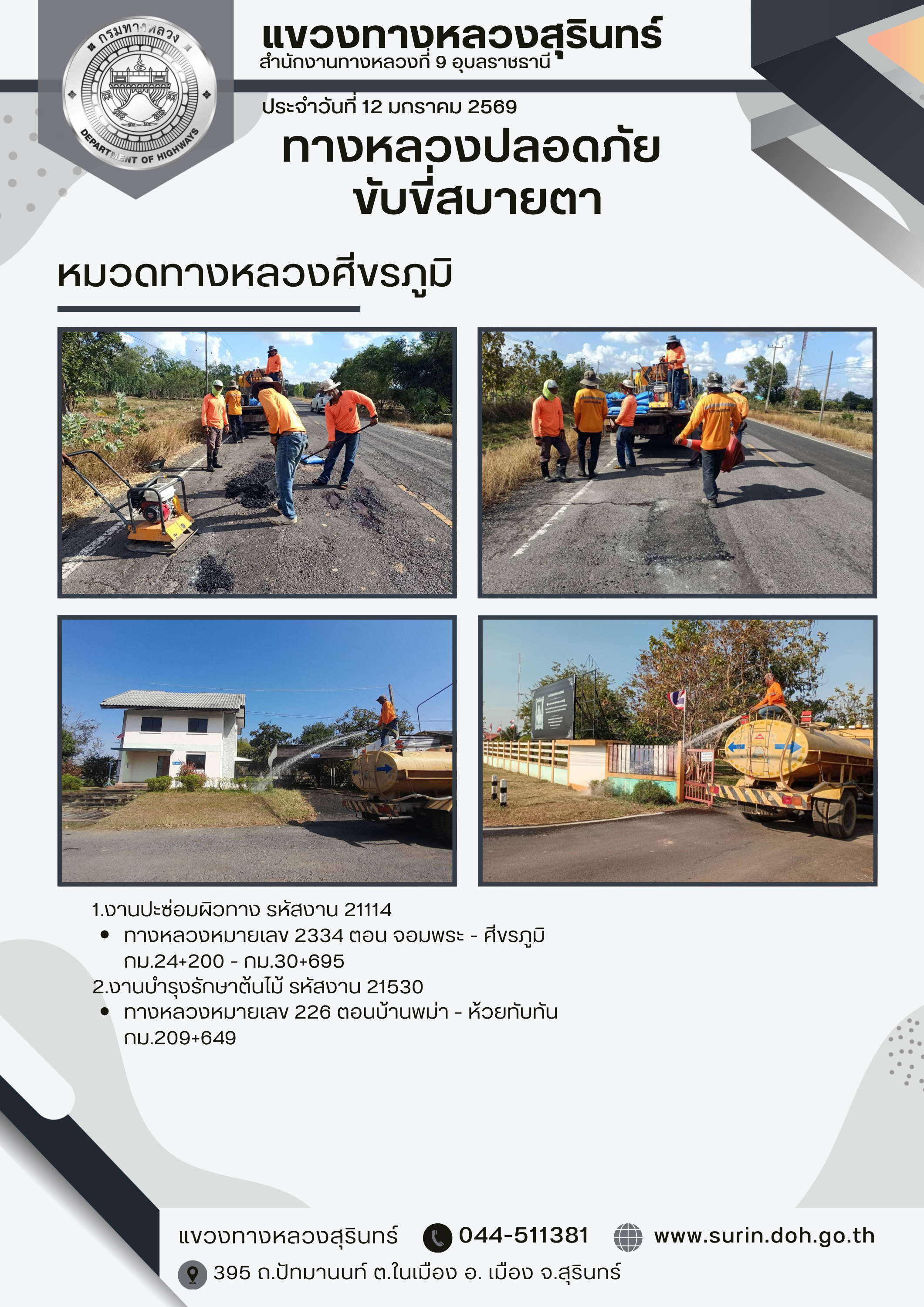 ทางหลวงปลอดภัย ขับขี่สบายตา 12 มกราคม 2569 |