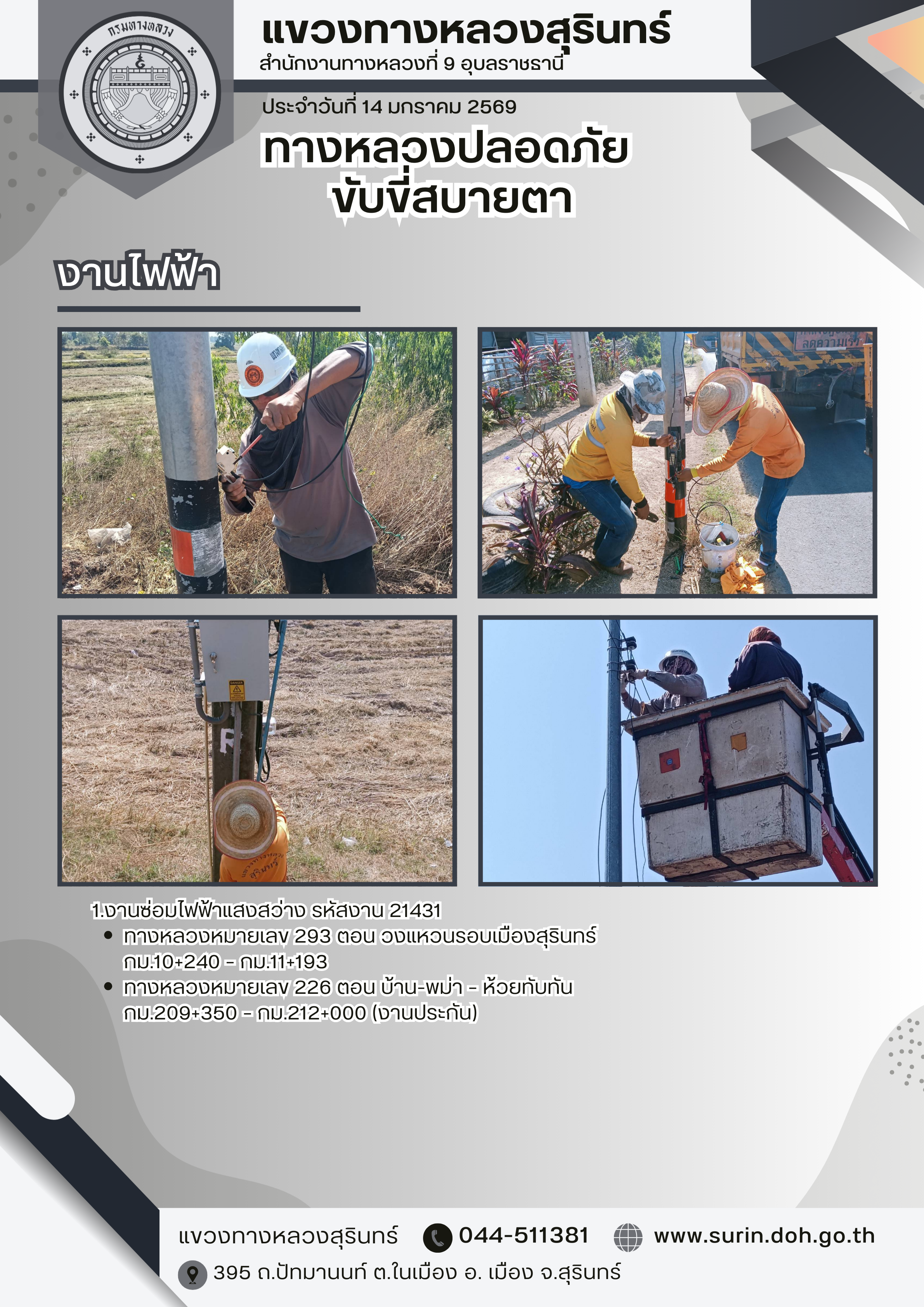 ทางหลวงปลอดภัย ขับขี่สบายตา 14 มกราคม 2569 |