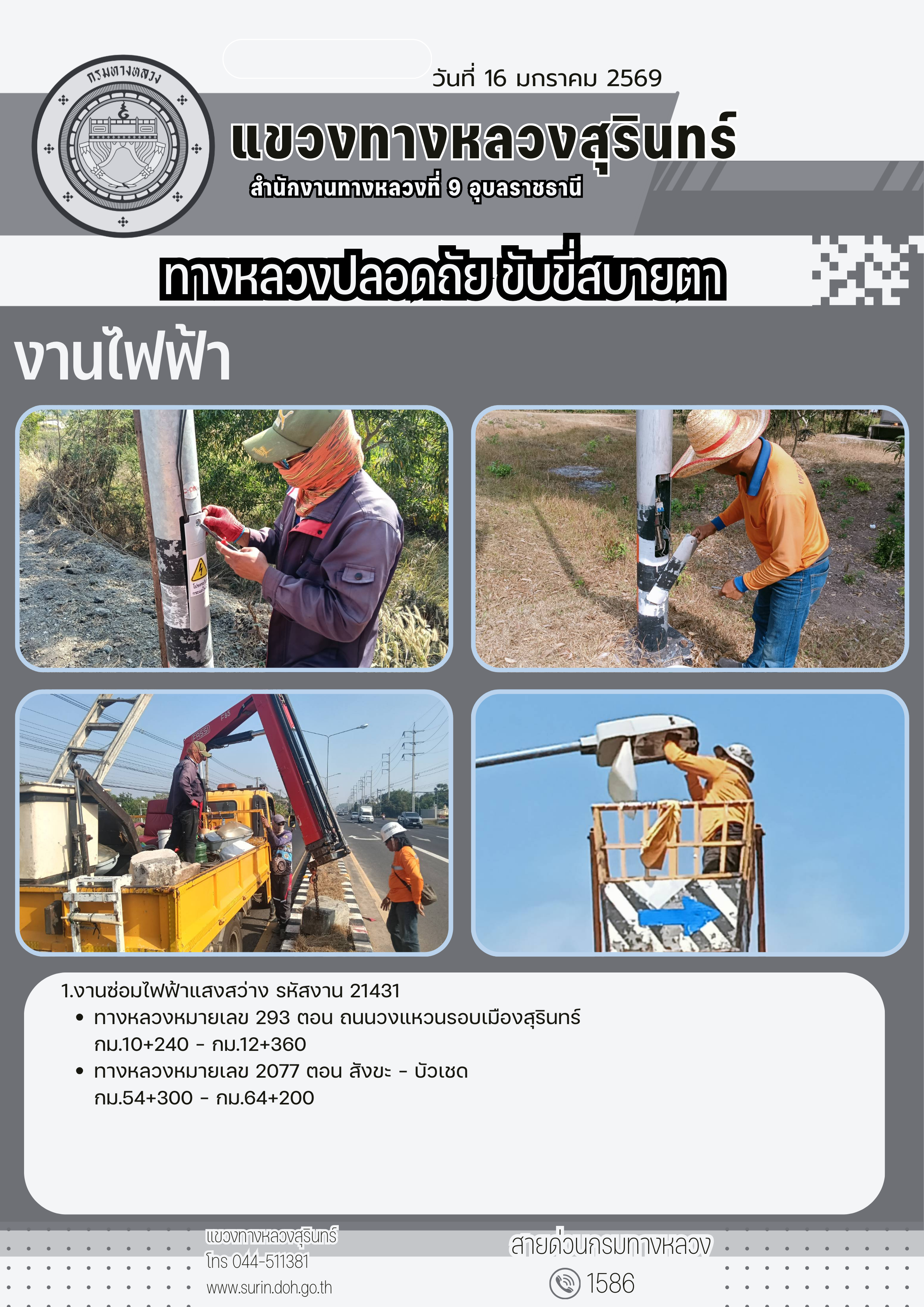 ทางหลวงปลอดภัย ขับขี่สบายตา 16 มกราคม 2569 |