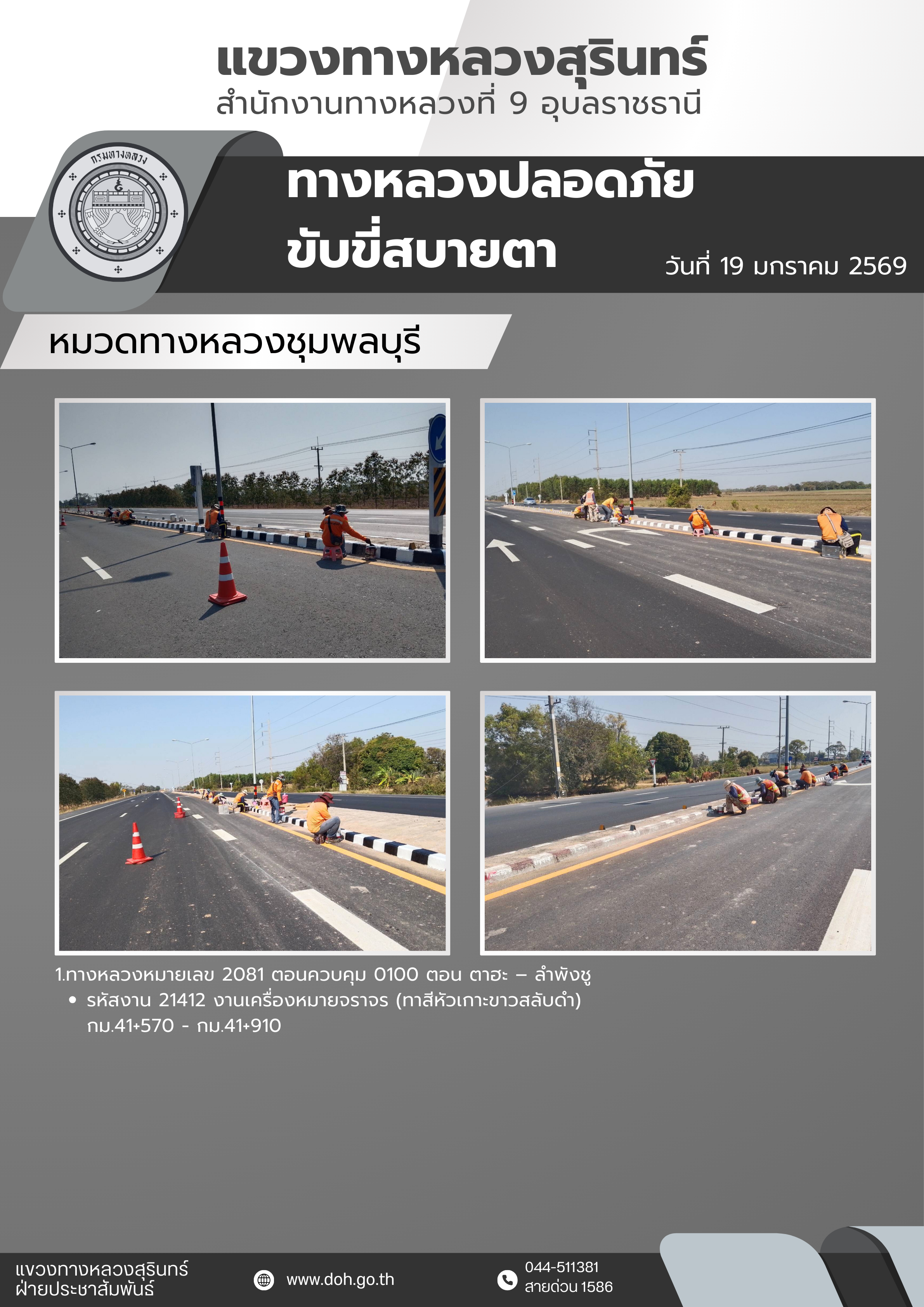 ทางหลวงปลอดภัย ขับขี่สบายตา 19 มกราคม 2568 |