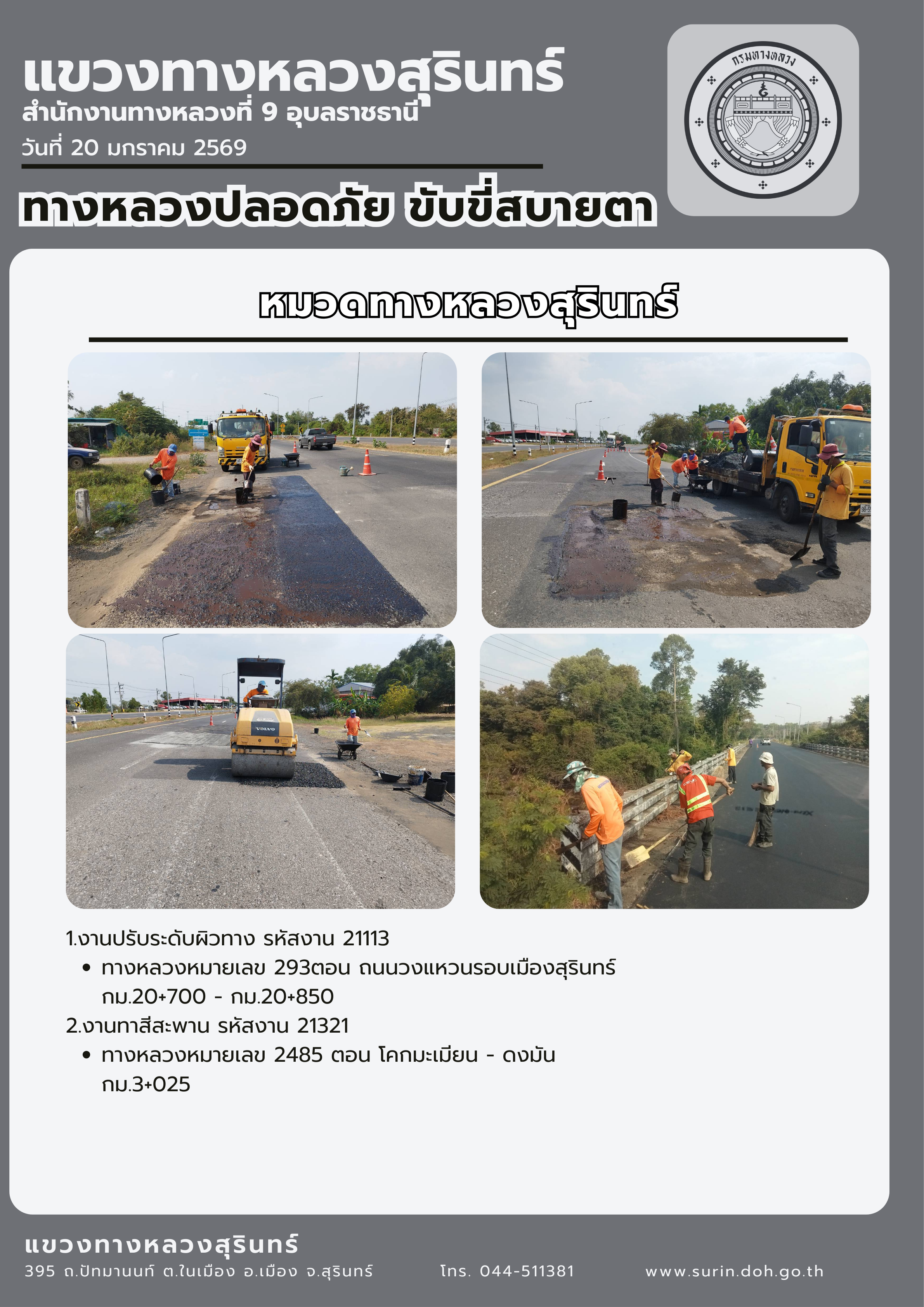 ทางหลวงปลอดภัย ขับขี่สบายตา 20 มกราคม 2569 |