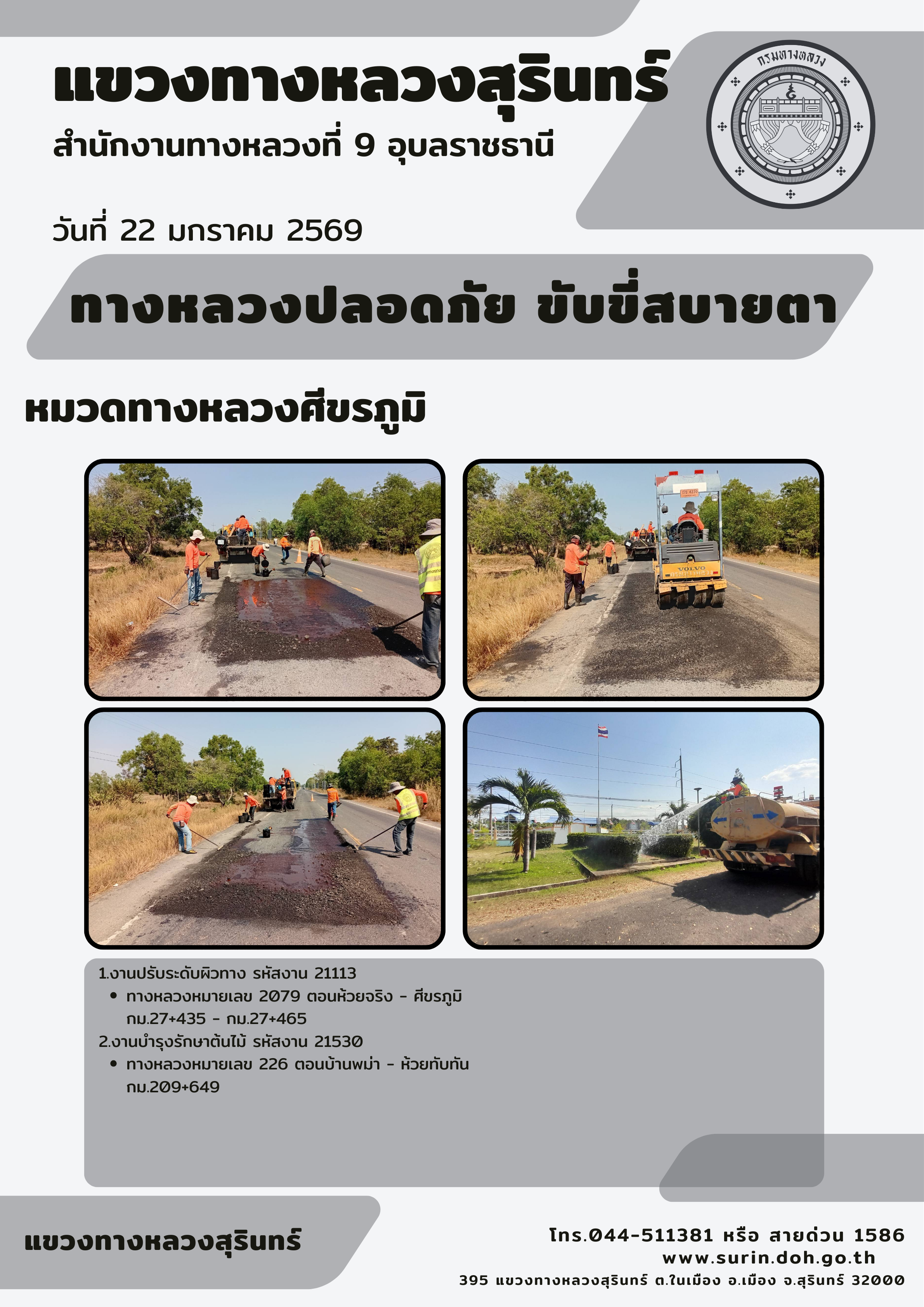 ทางหลวงปลอดภัย ขับขี่สบายตา 22 มกราคม 2569 |