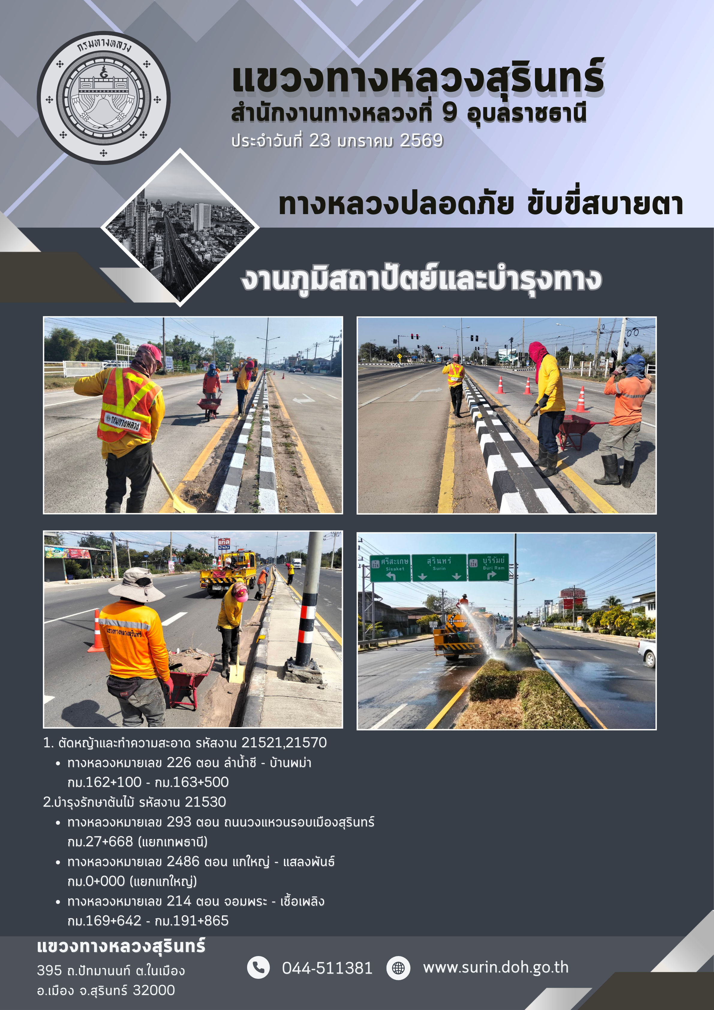 ทางหลวงปลอดภัย ขับขี่สบายตา 23 มกราคม 2569 |