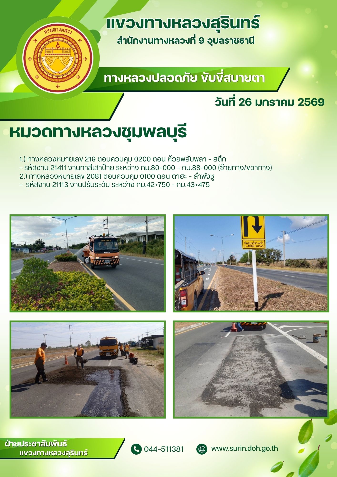 ทางหลวงปลอดภัย ขับขี่สบายตา 28 มกราคม 2569 |