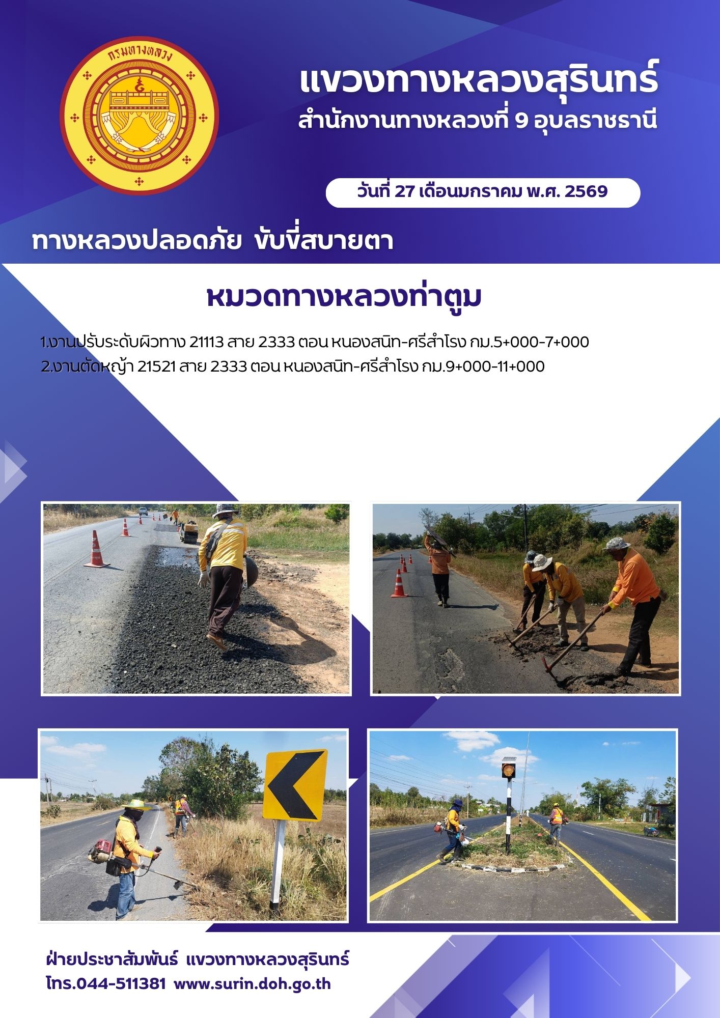 ทางหลวงปลอดภัย ขับขี่สบายตา 27 มกราคม 2569 |