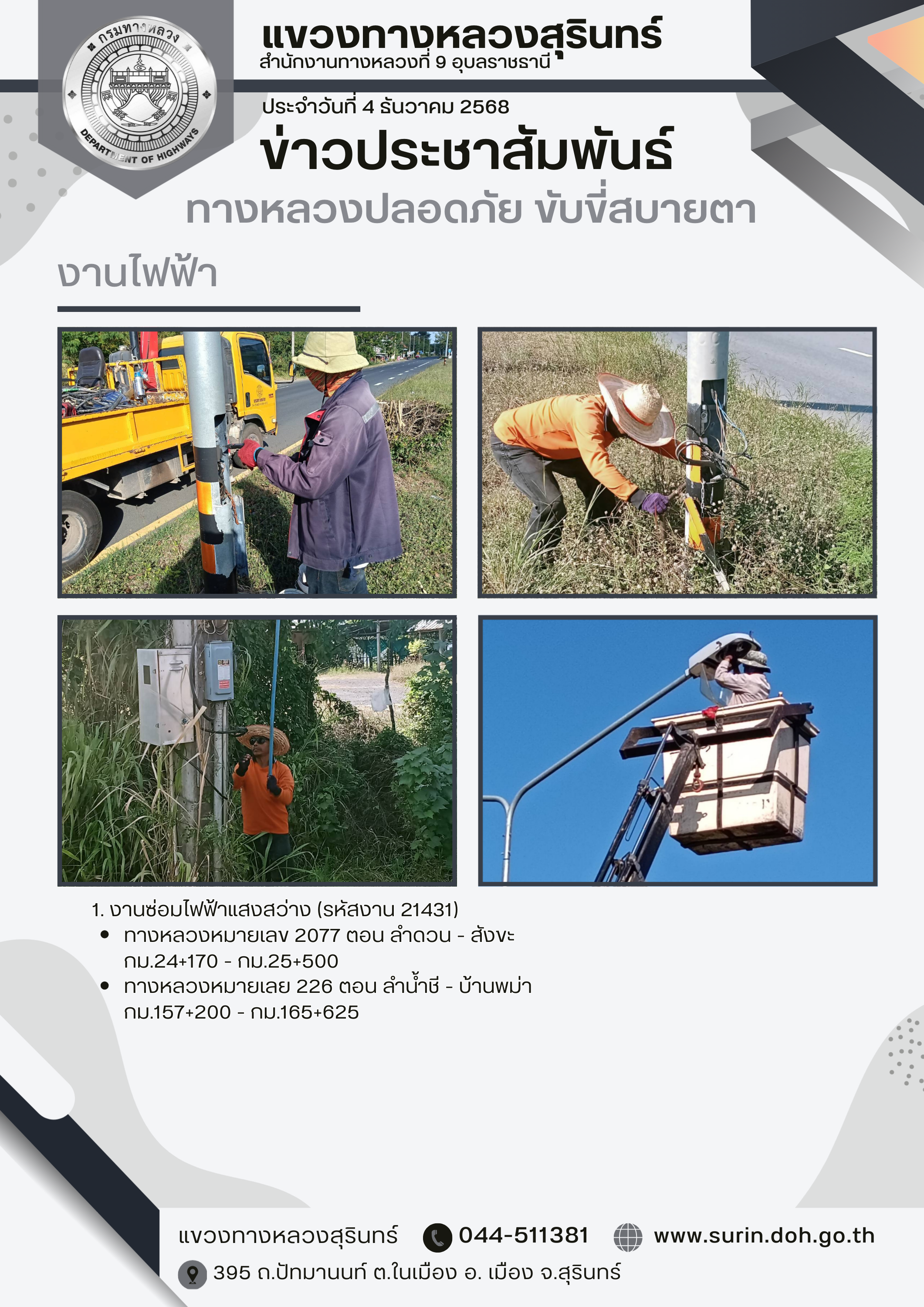 ทางหลวงปลอดภัย ขับขี่สบายตา 4 ธันวาคม 2568 |