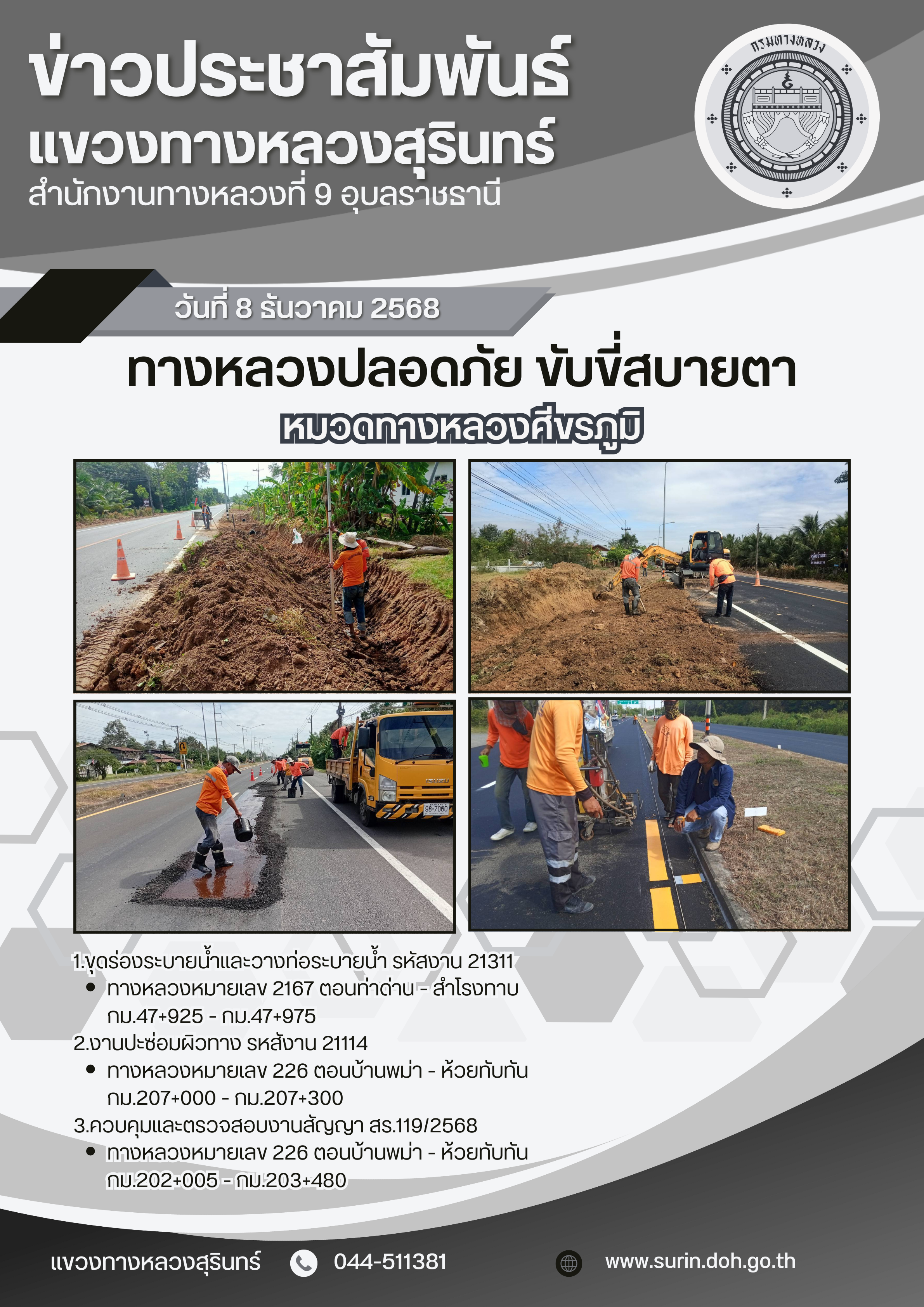 ทางหลวงปลอดภัย ขับขี่สบายตา 8 ธันวาคม 2568 |