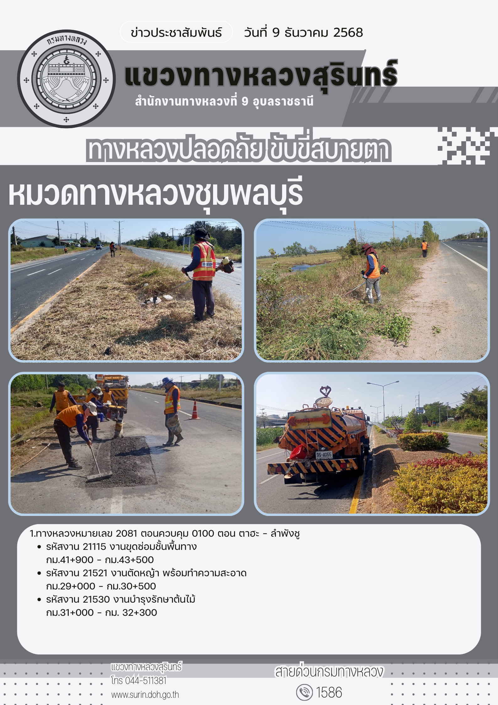 ทางหลวงปลอดภัย ขับขี่สบายตา 9 ธันวาคม 2568 |