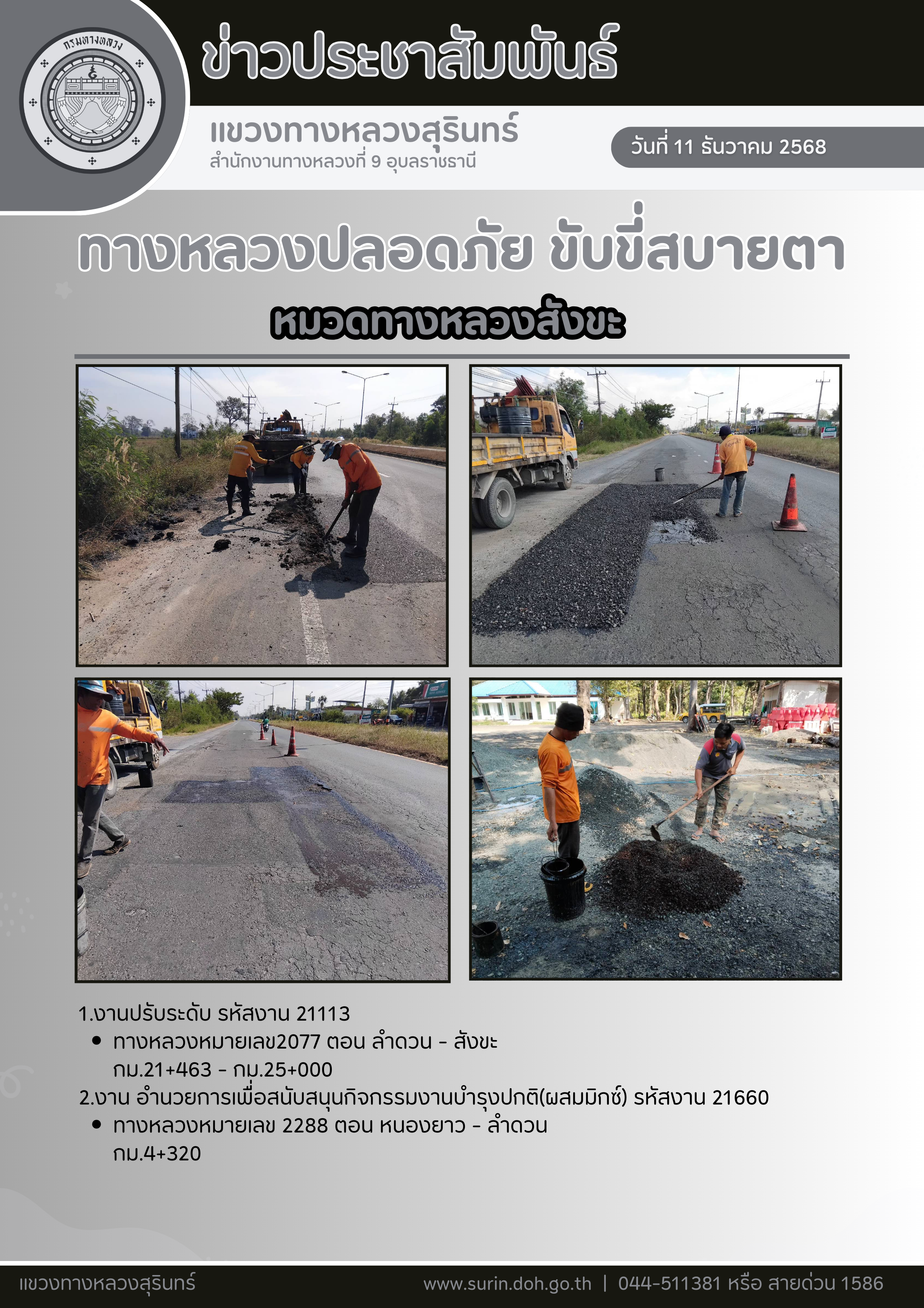 ทางหลวงปลอดภัย ขับขี่สบายตา 11 ธันวาคม 2568 |