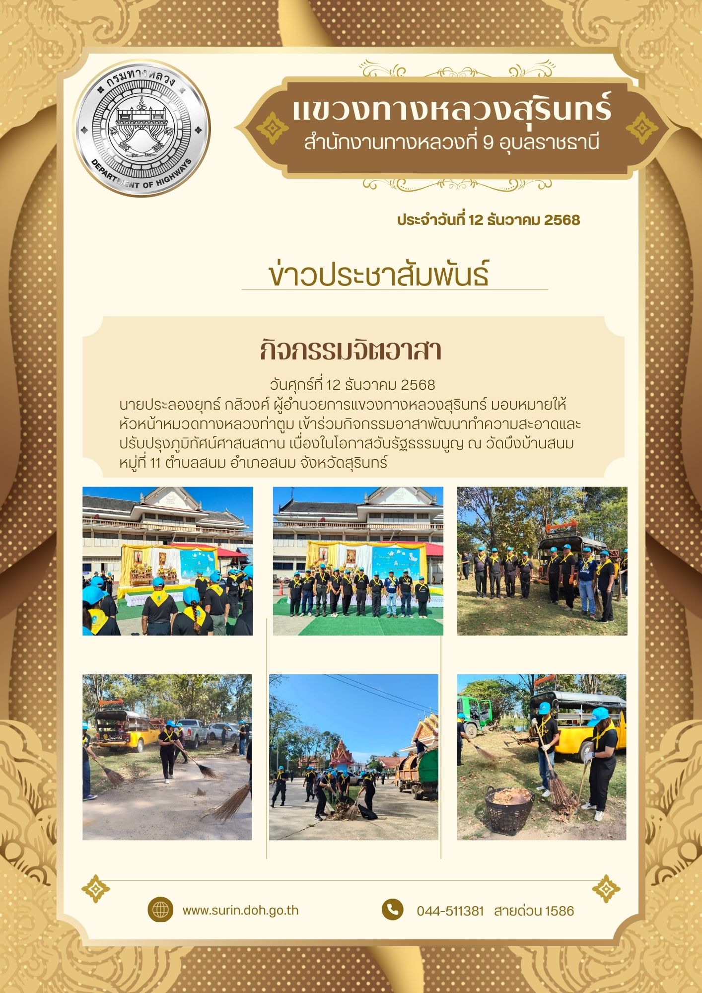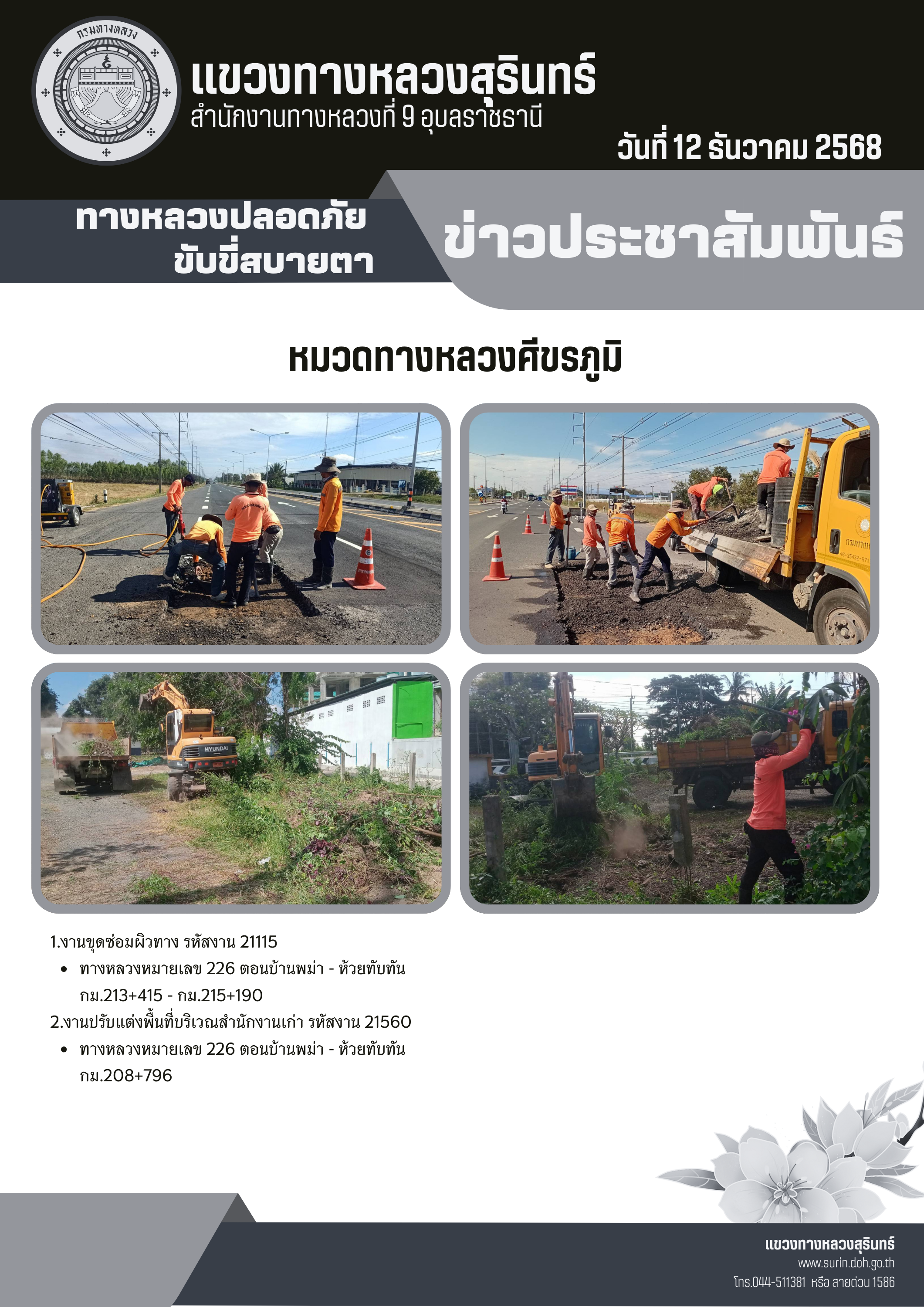 ทางหลวงปลอดภัย ขับขี่สบายตา 12 ธันวาคม 2568 |