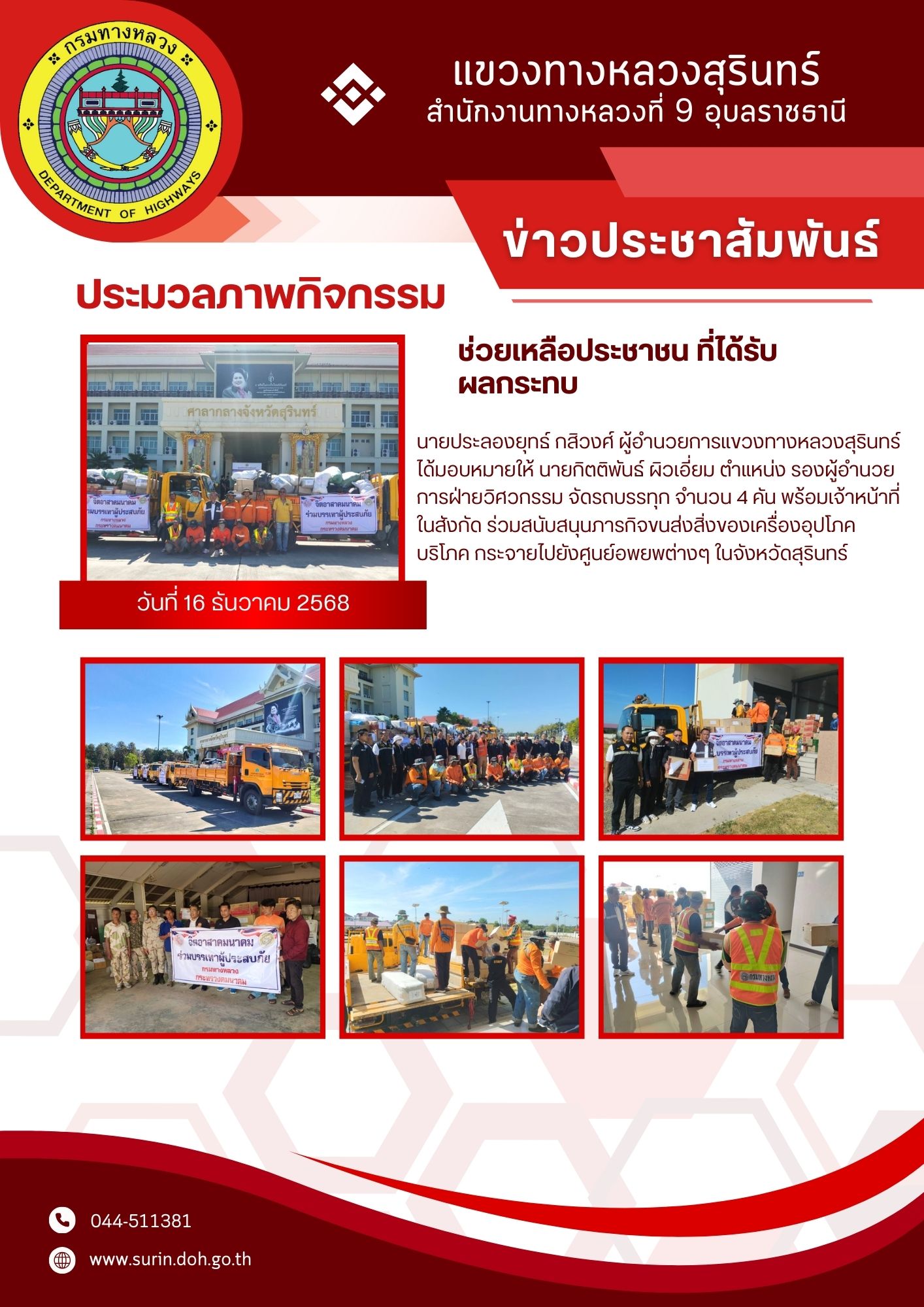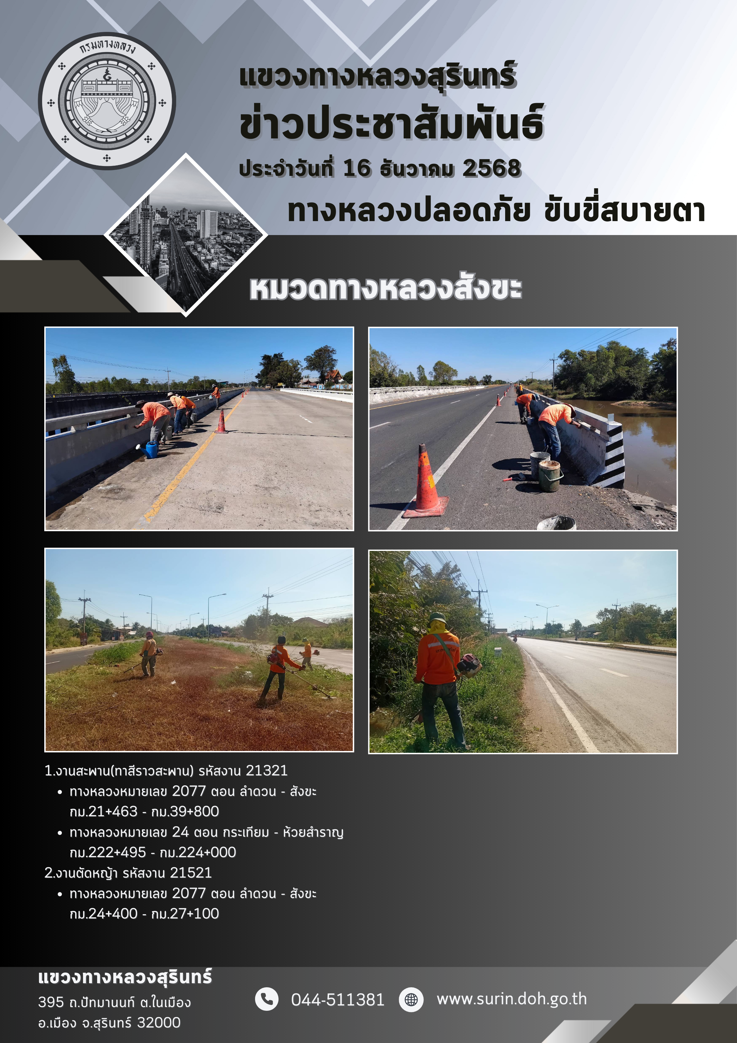 ทางหลวงปลอดภัย ขับขี่สบายตา 16 ธันวาคม 2568 |