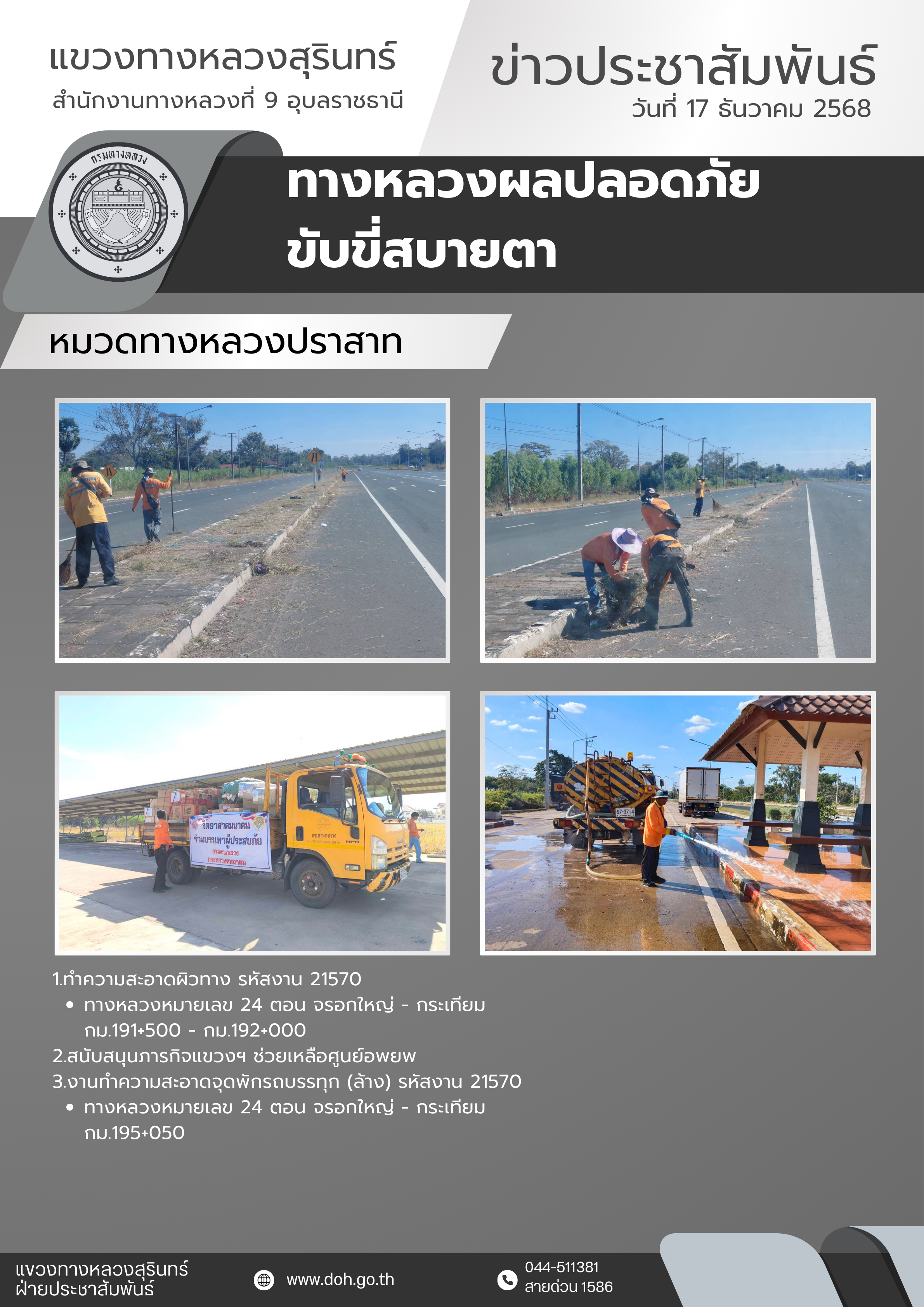 ทางหลวงปลอดภัย ขับขี่สบายตา 17 ธันวาคม 2568 |