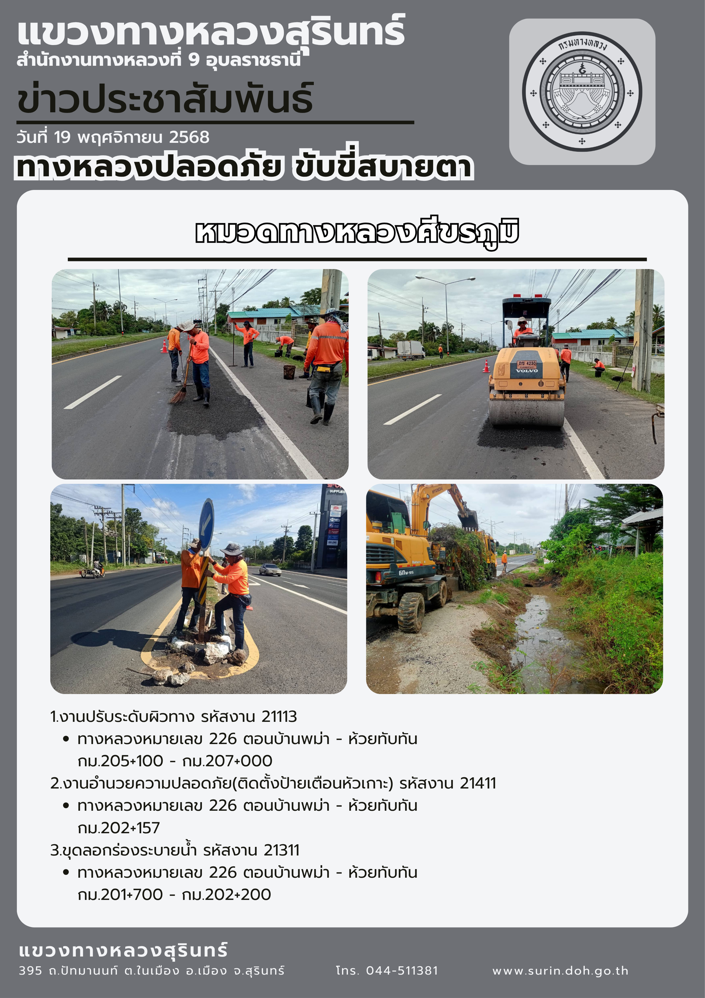 ทางหลวงปลอดภัย ขับขี่สบายตา 19 พฤศจิกายน 2568 |