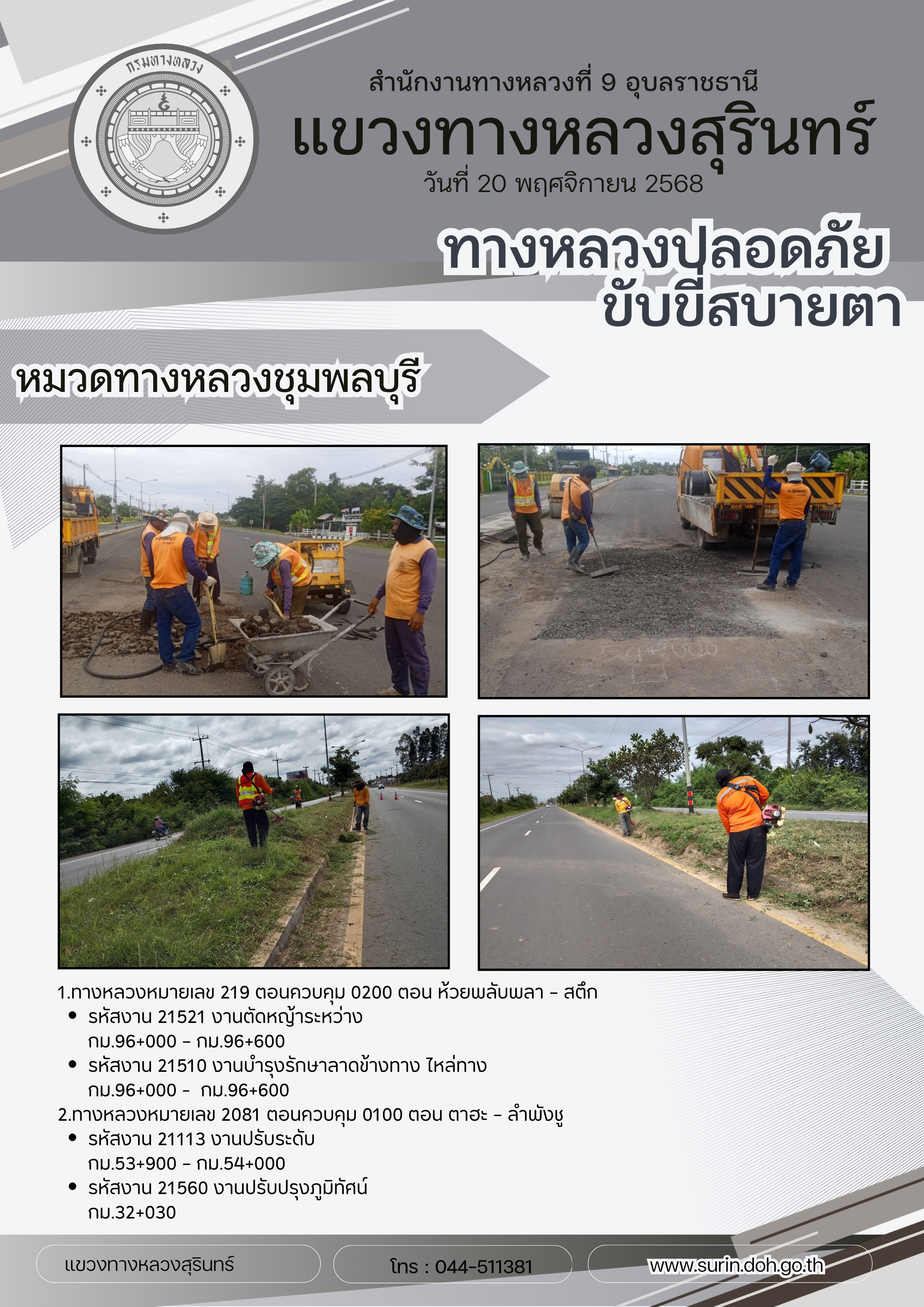 ทางหลวงปลอดภัย ขับขี่สบายตา 20 พฤศจิกายน 2568 |