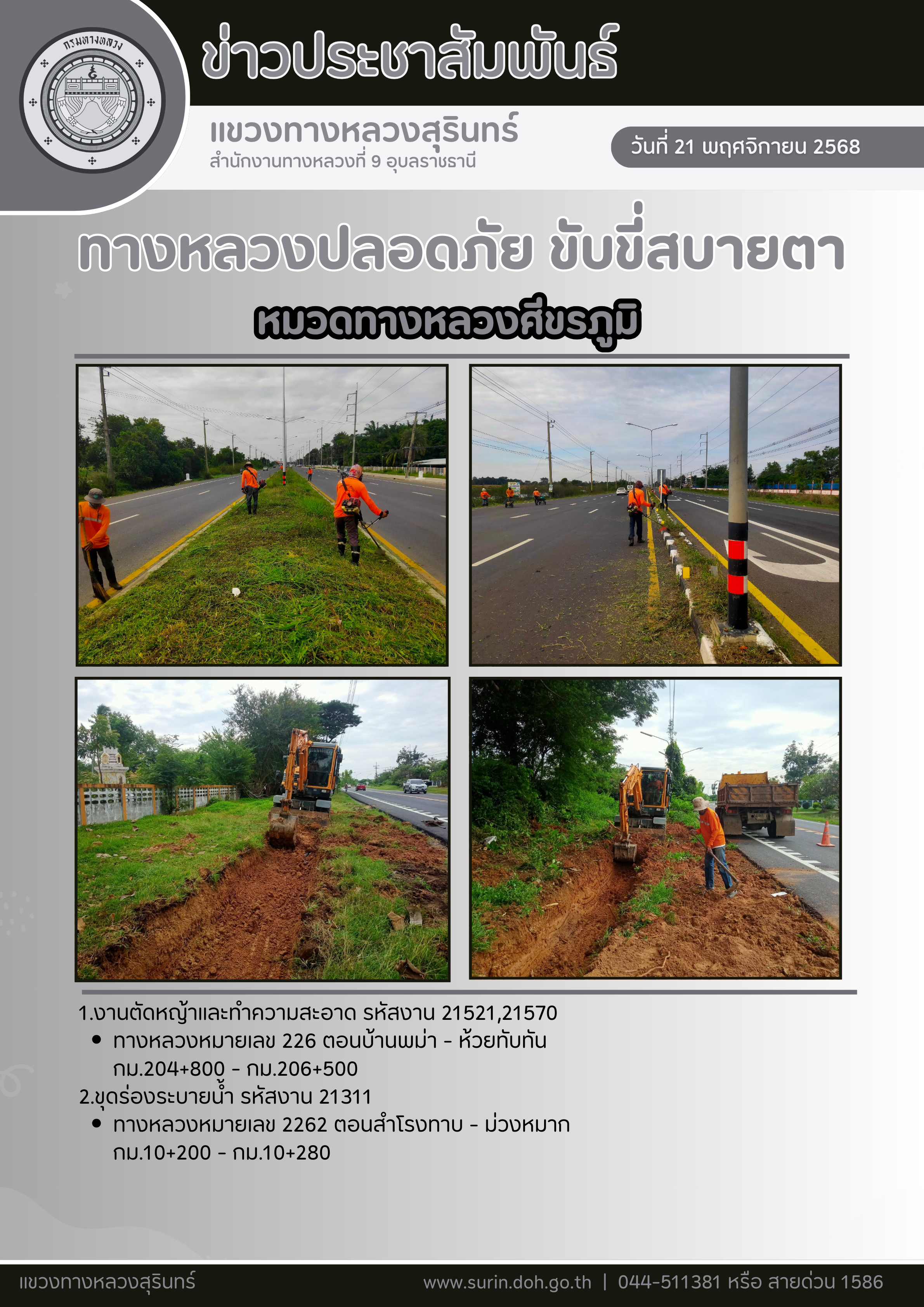 ทางหลวงปลอดภัย ขับขี่สบายตา 21 พฤศจิกายน 2568 |