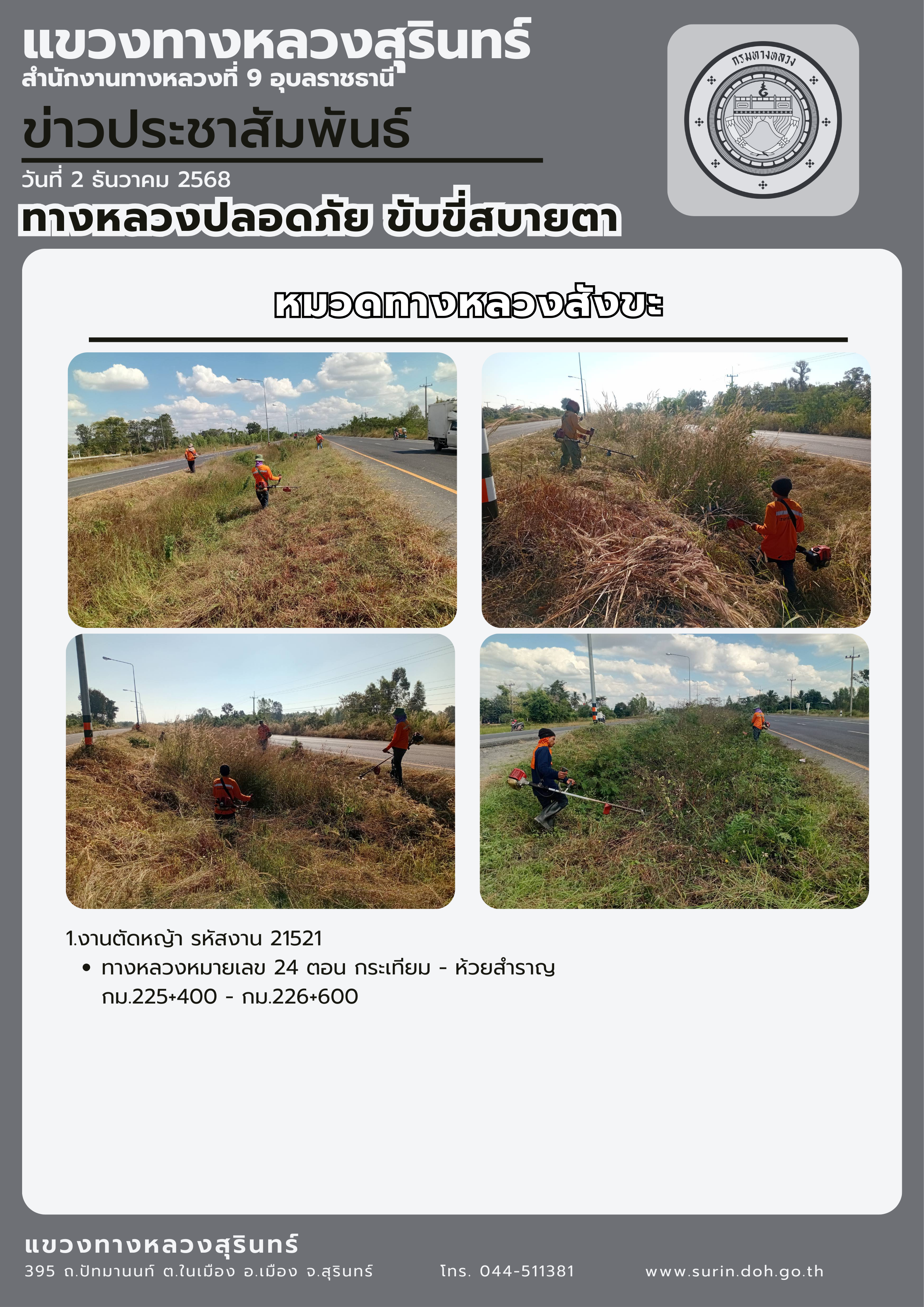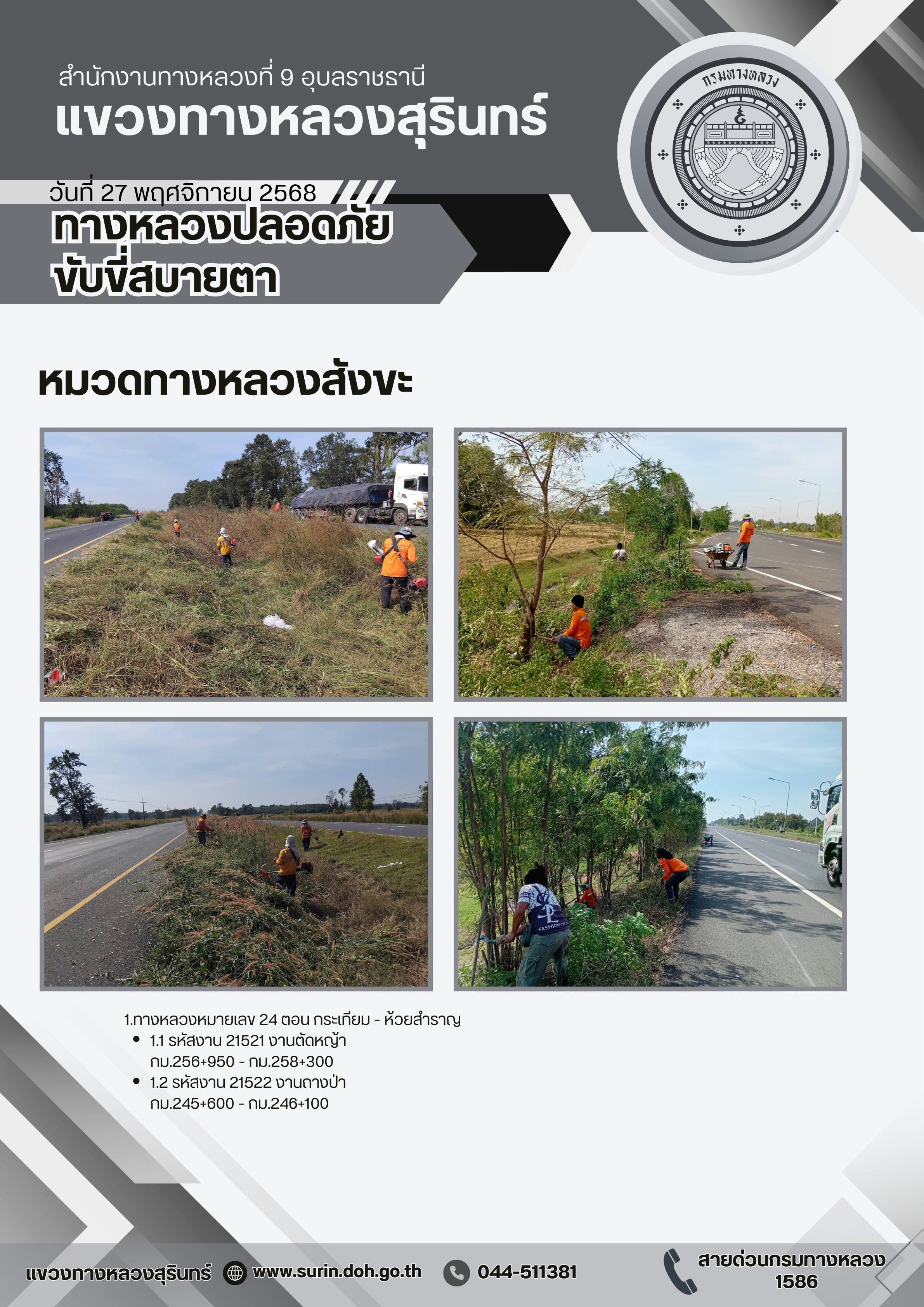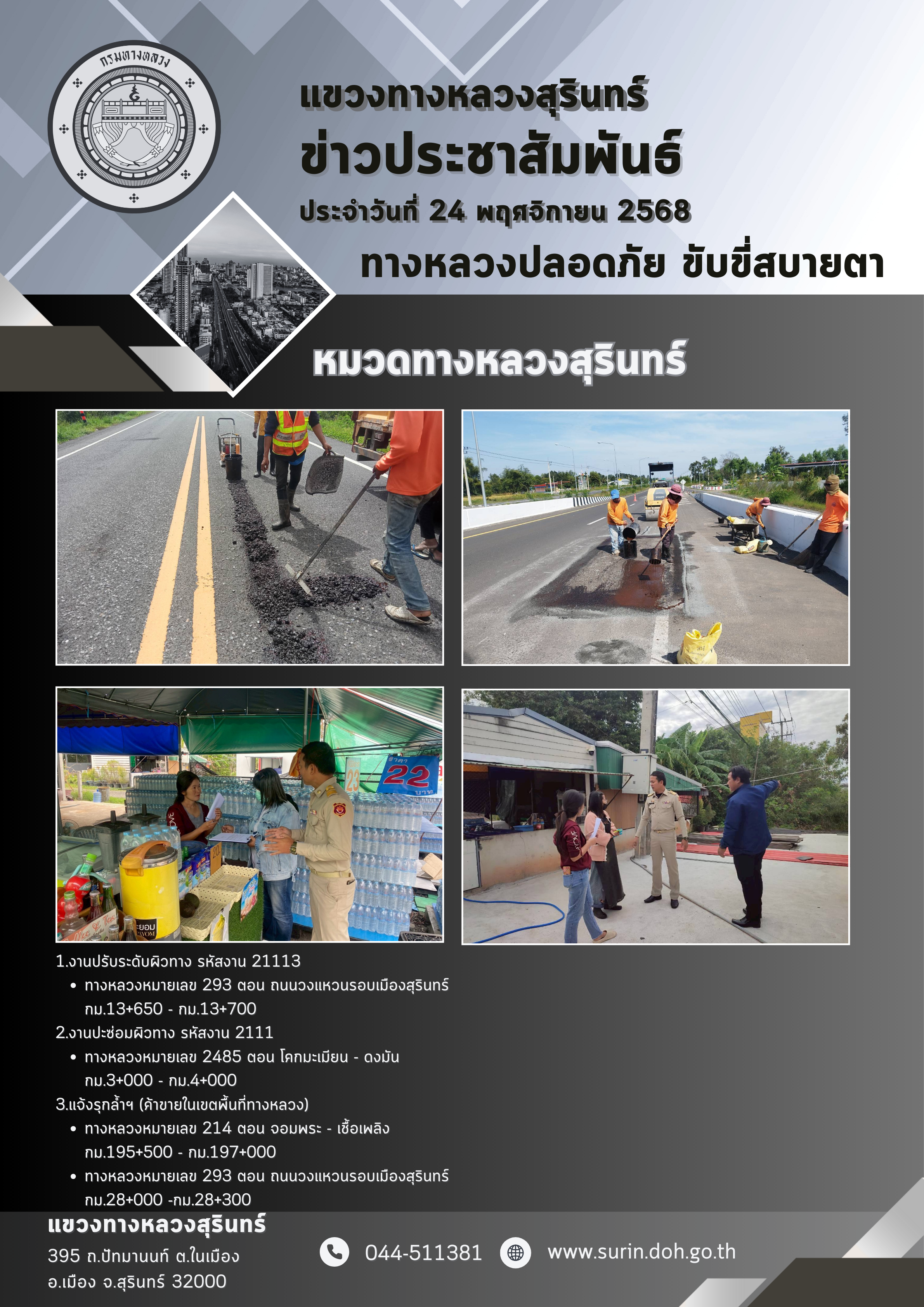 ทางหลวงปลอดภัย ขับขี่สบายตา 24 พฤศจิกายน 2568 |