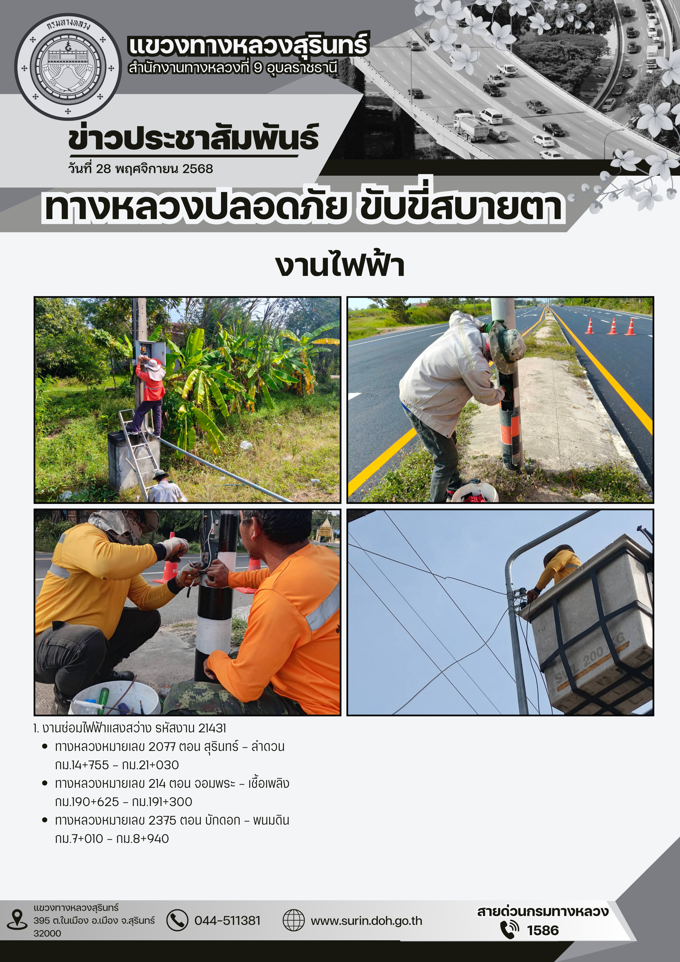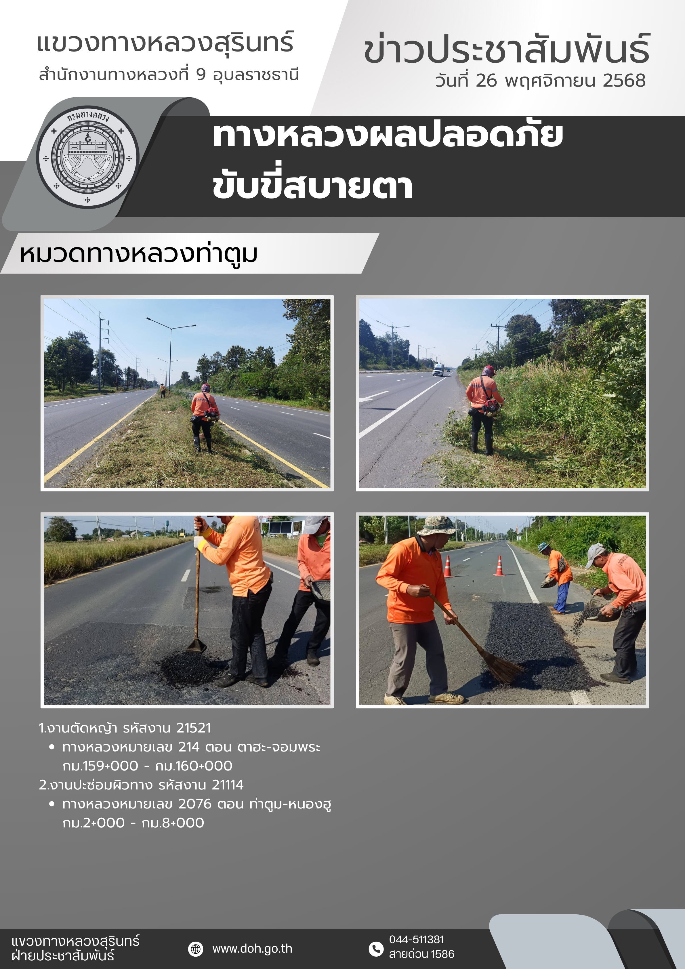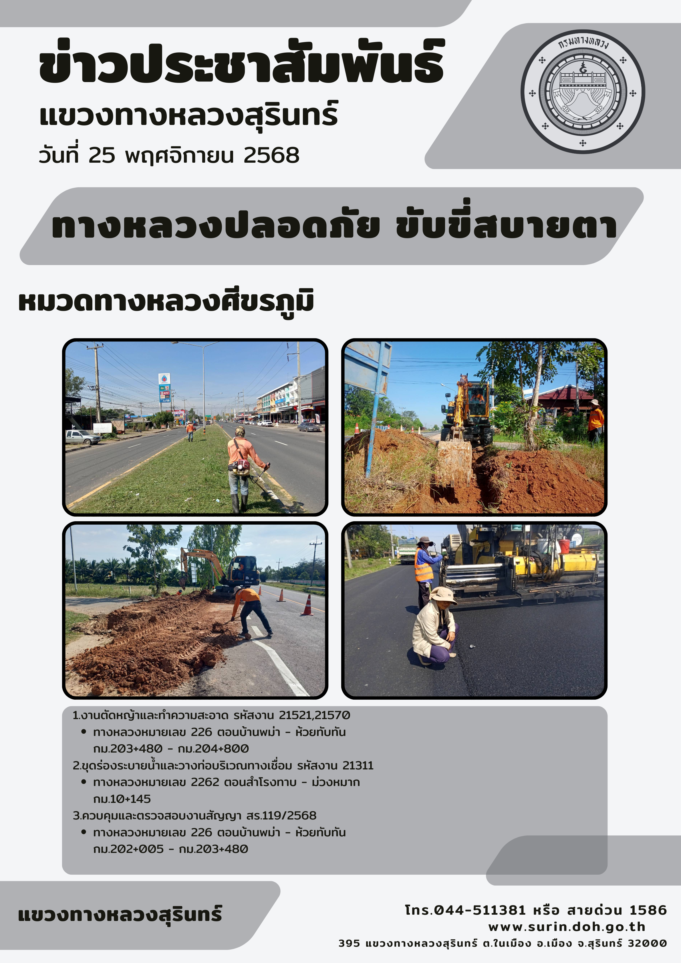 ทางหลวงปลอดภัย ขับขี่สบายตา 25 พฤศจิกายน 2568 |
