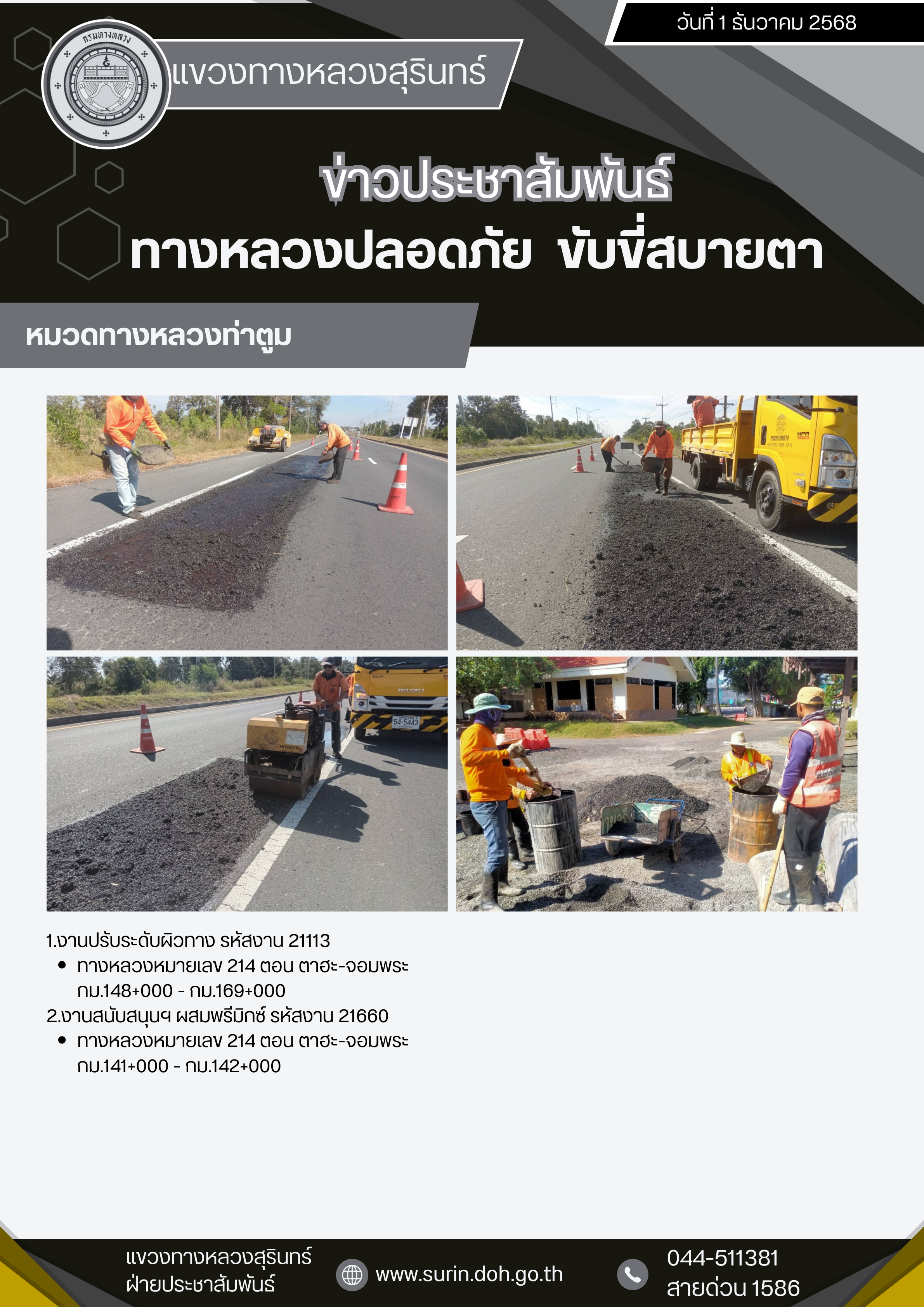 ทางหลวงปลอดภัย ขับขี่สบายตา 1 ธันวาคม 2568 |