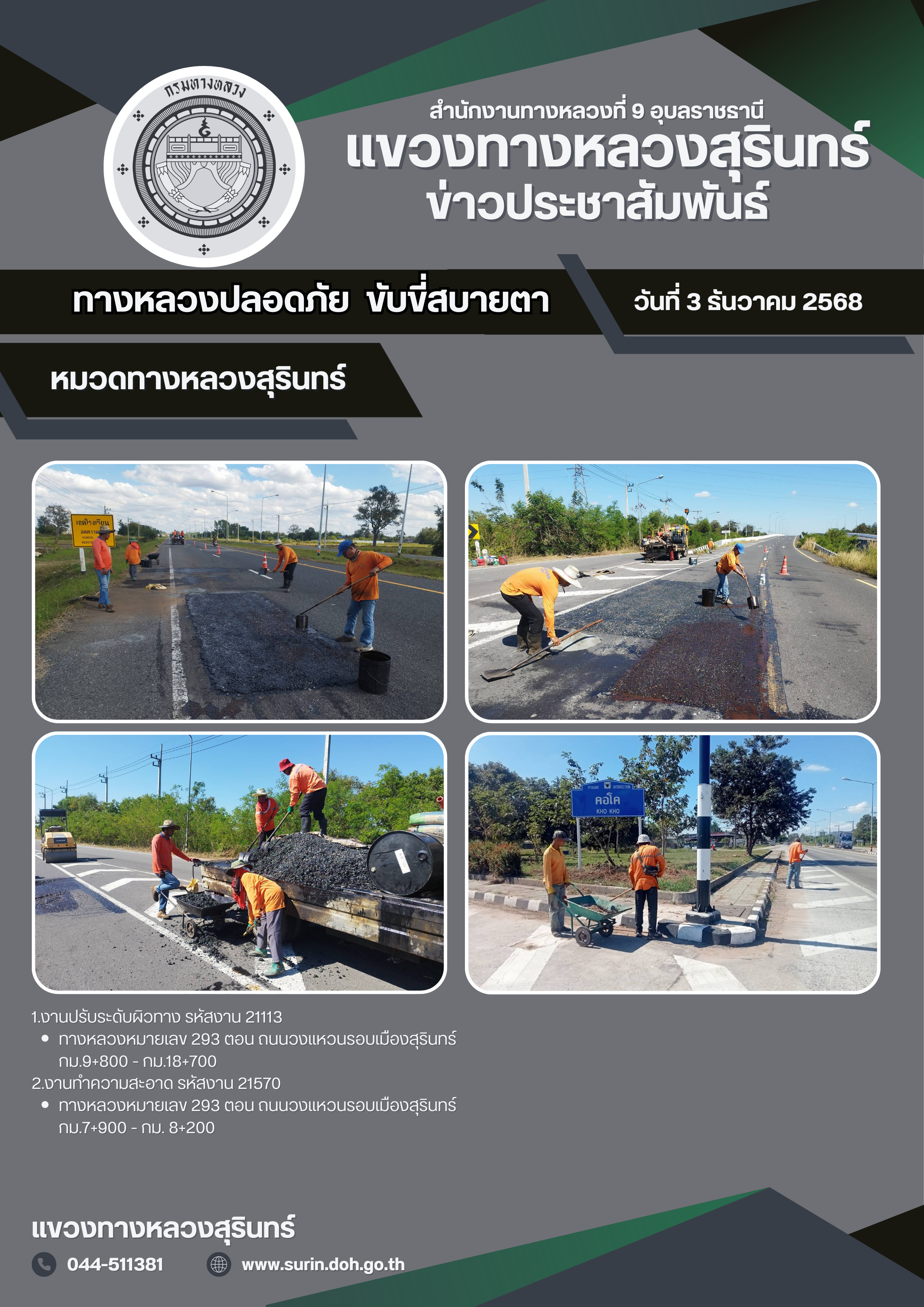 ทางหลวงปลอดภัย ขับขี่สบายตา 3 ธันวาคม 2568 |