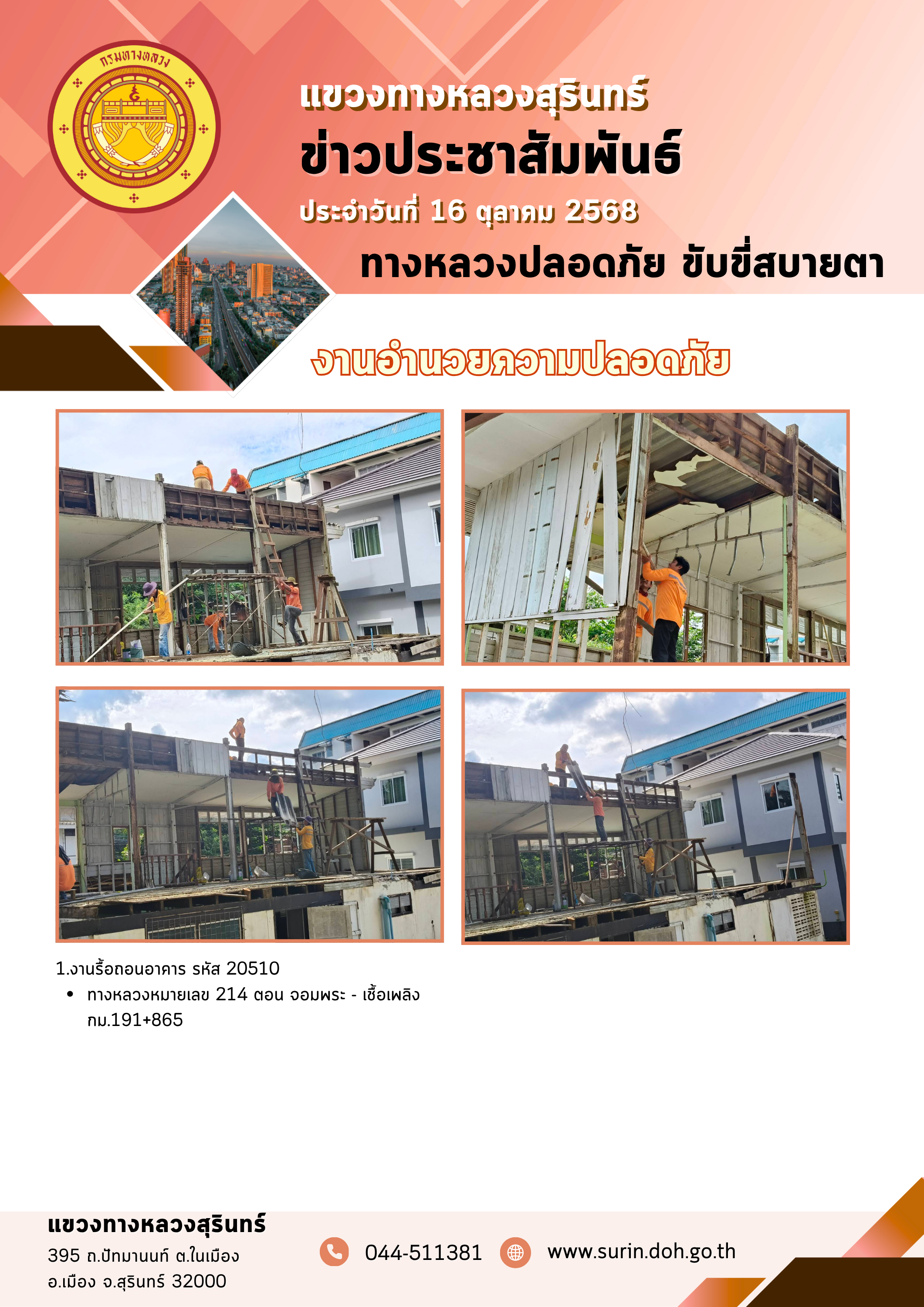 ทางหลวงปลอดภัย ขับขี่สบายตา 16 ตุลาคม 2568 |