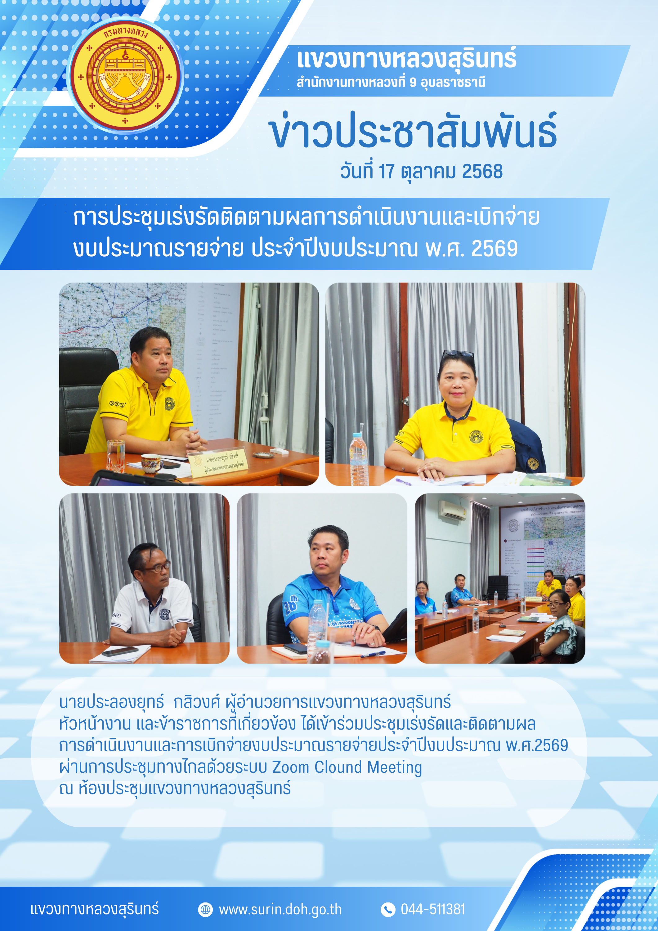 การประชุมเร่งรัดติดตามผลการดำเนินงานและเบิกจ่ายปี 2569 |