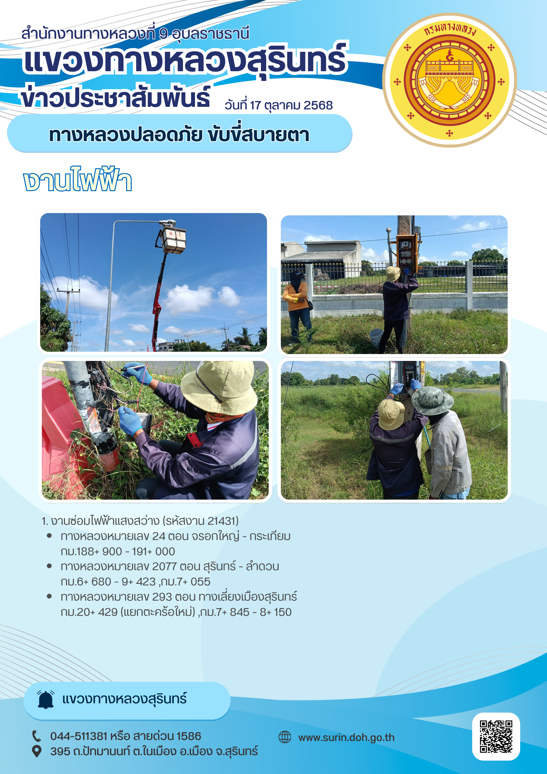 ทางหลวงปลอดภัย ขับขี่สบายตา 17 ตุลาคม 2568 |