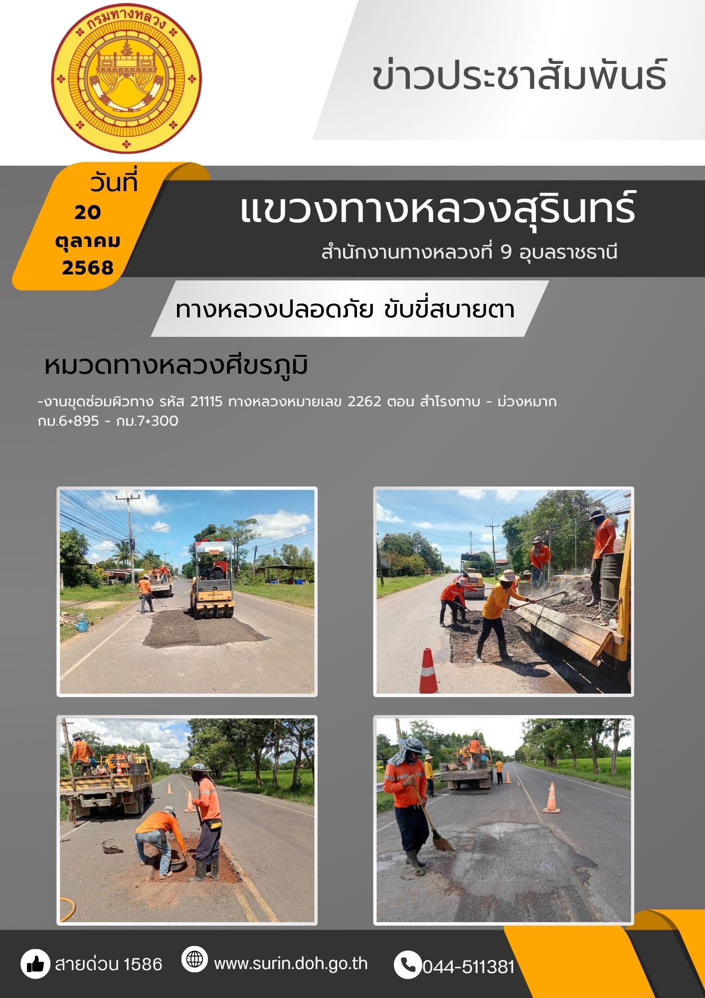 ทางหลวงปลอดภัย ขับขี่สบายตา 20 ตุลาคม 2568 |